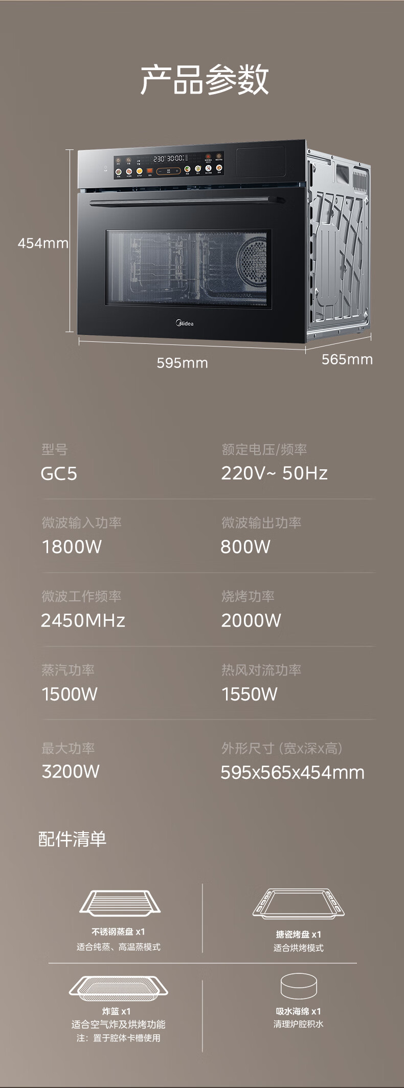 Midea 55L embedded variable frequency micro-steaming oven air frying 10-inch large color screen multi-functional micro-steaming, roasting, frying and stewing all-in-one machine GC5 (supports Hongmeng Zhilian)