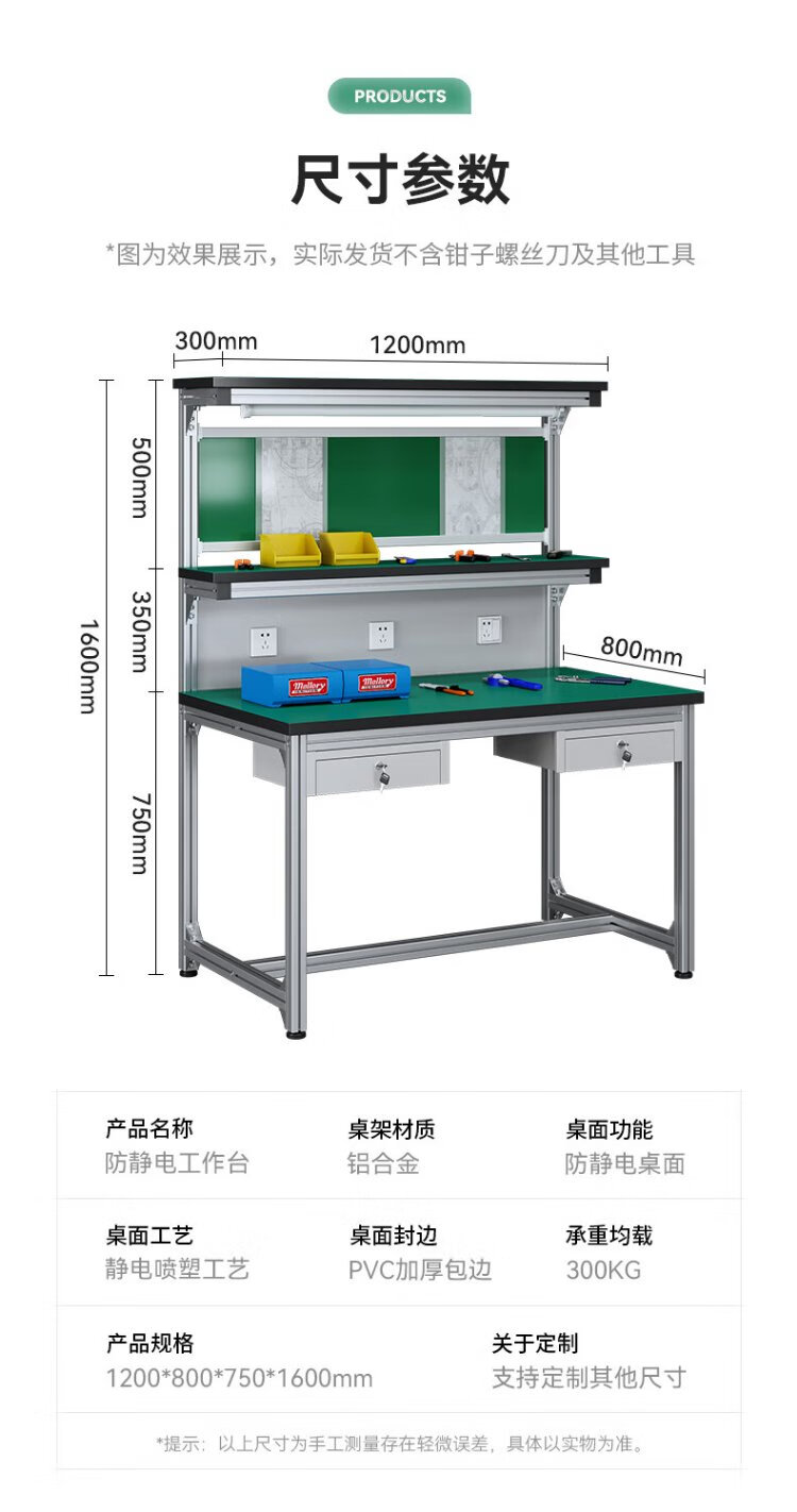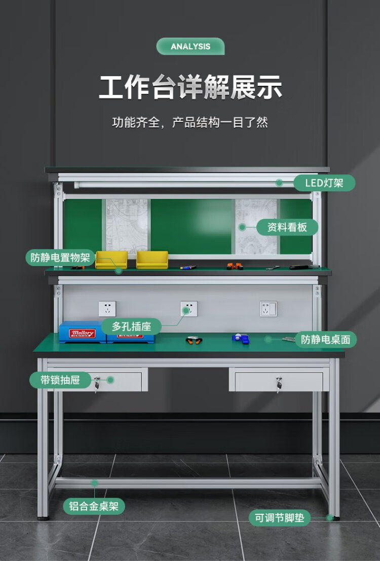 Saint Aurora aluminum alloy workbench assembly line anti-static operating table G7755 three-layer double extraction 120*80*160cm