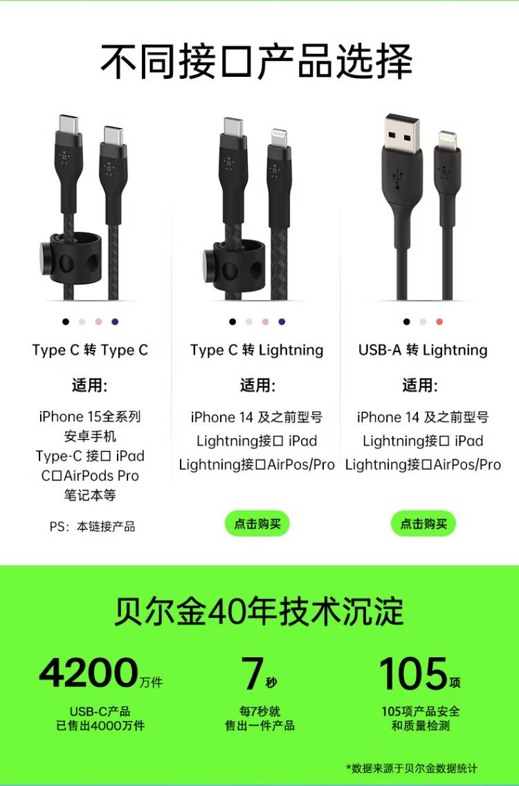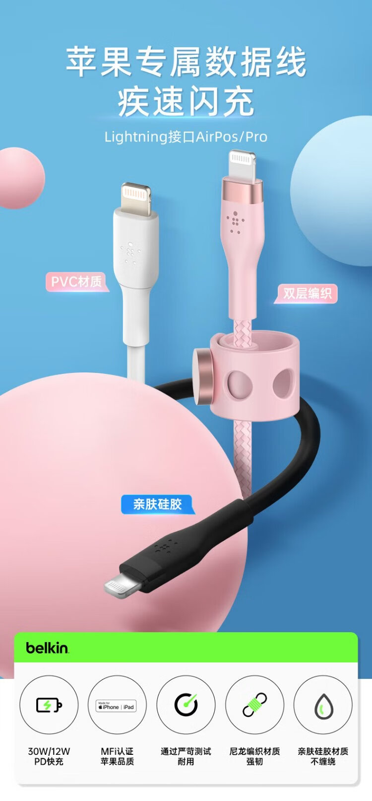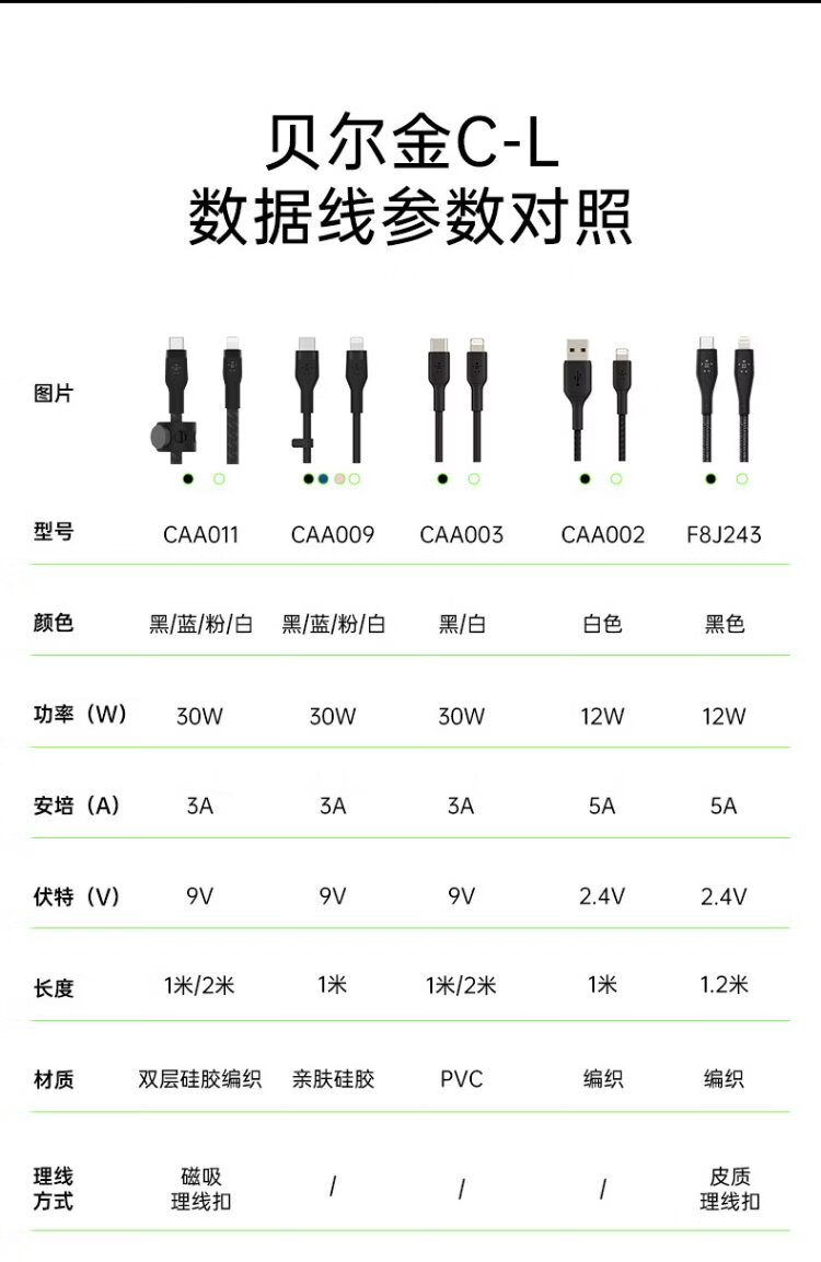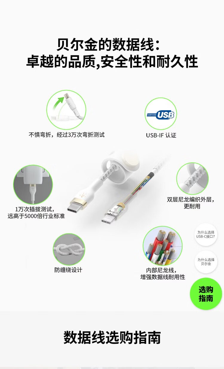 Belkin (BELKIN) Apple data cable PD fast charging Type-C to Lightning charging cable MFi certified iPhone mobile phone charging cable 1 meter white braid CAA004