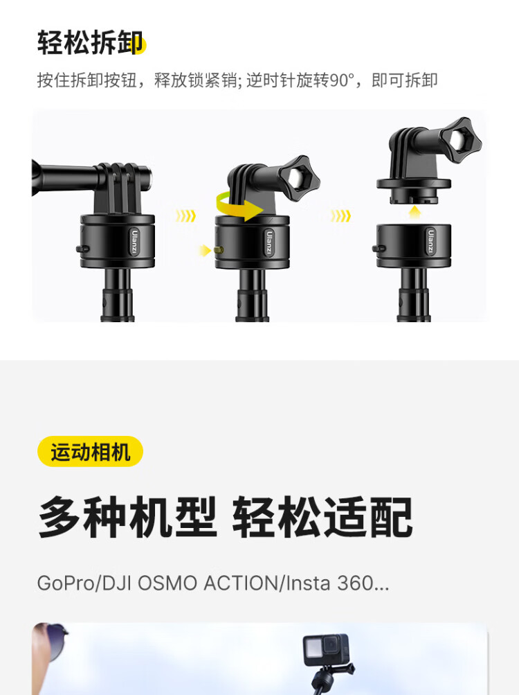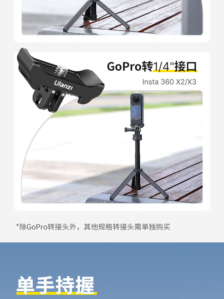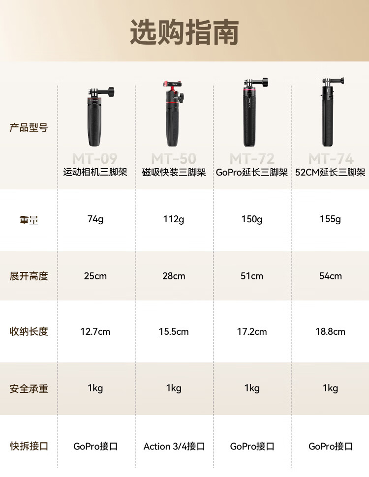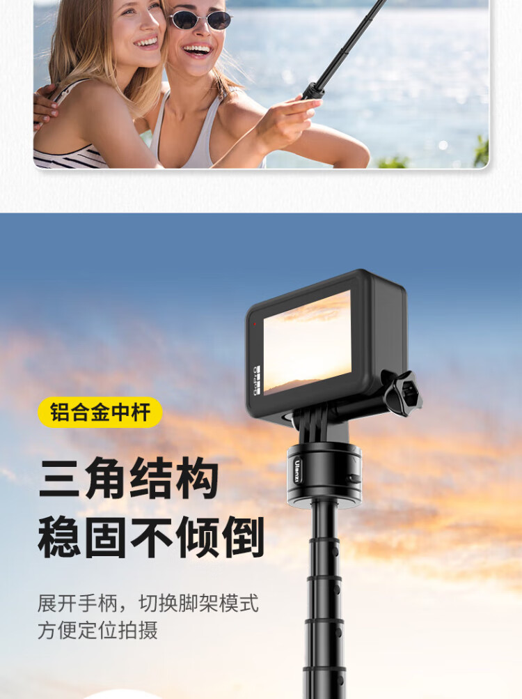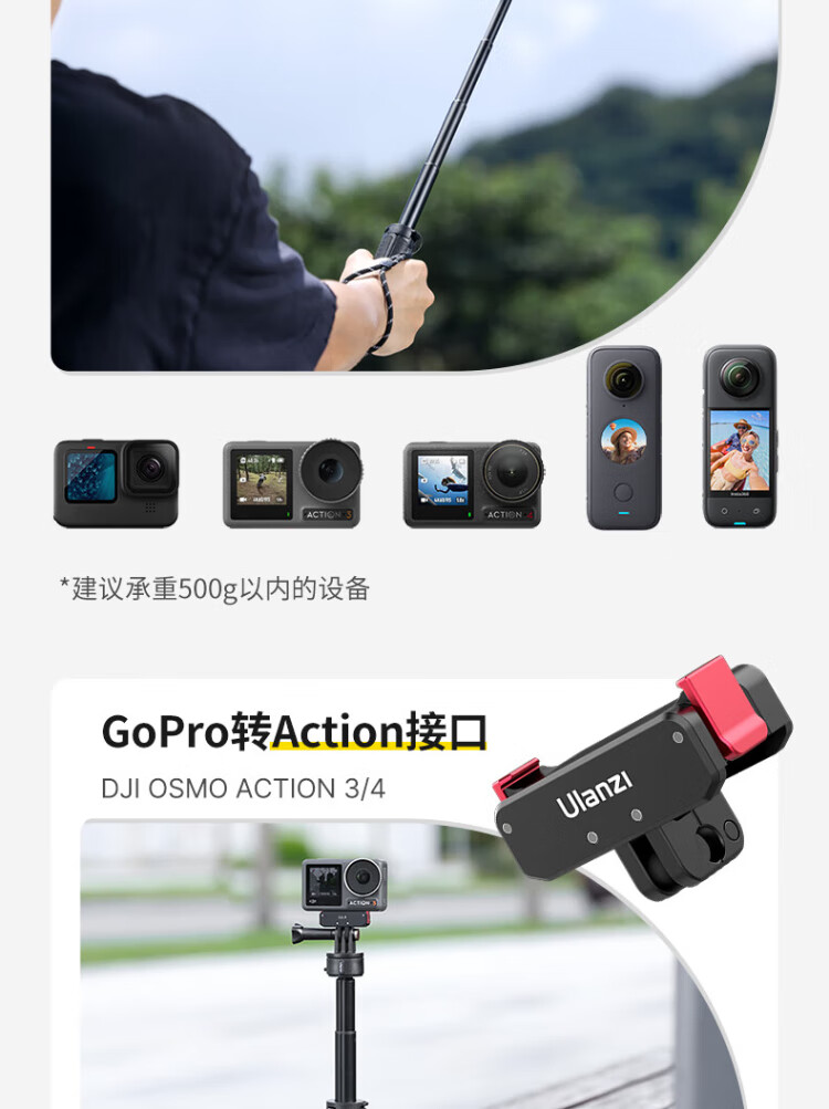 Ulanzi Youbasket MT-74 action camera extended tripod photo handle Gopro13/12 DJI action5Pro/4/3 selfie stick universal photography bracket accessories