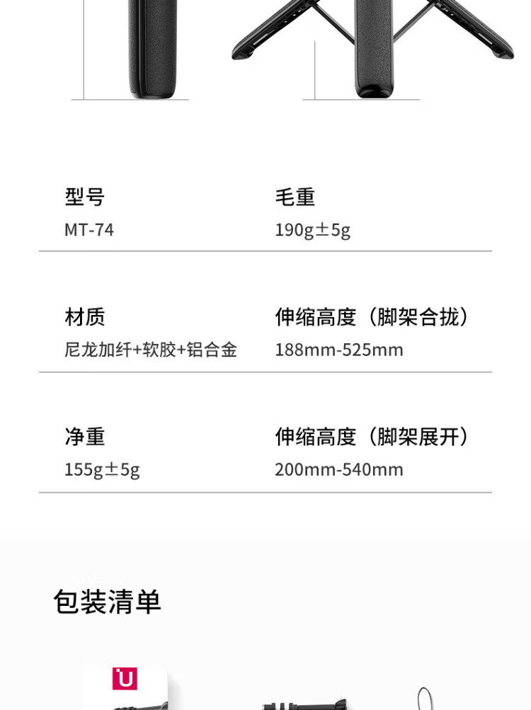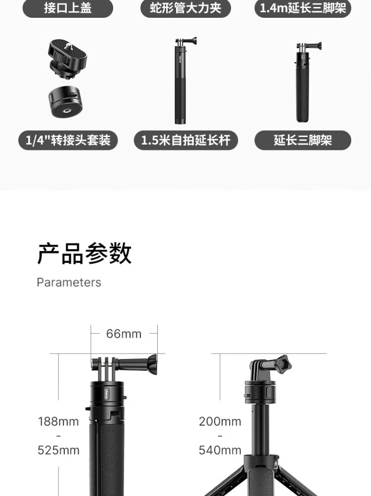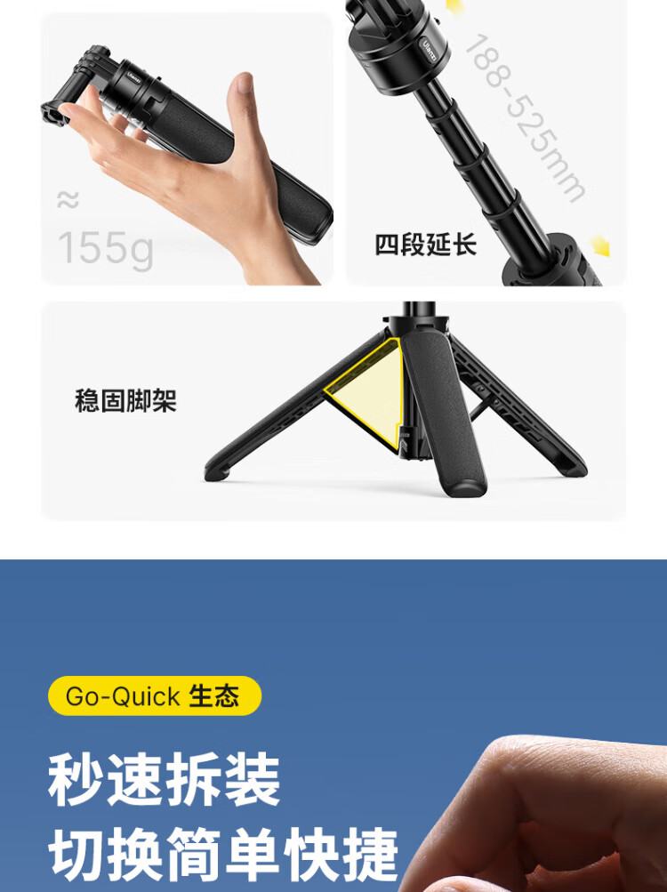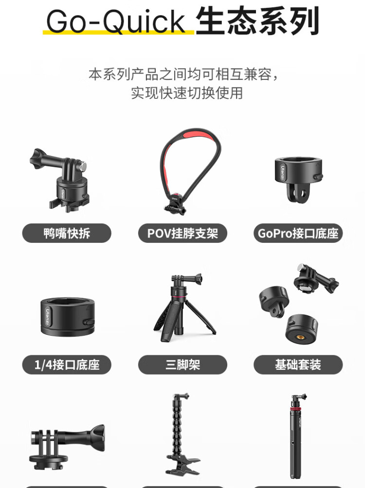 Ulanzi Youbasket MT-74 action camera extended tripod photo handle Gopro13/12 DJI action5Pro/4/3 selfie stick universal photography bracket accessories