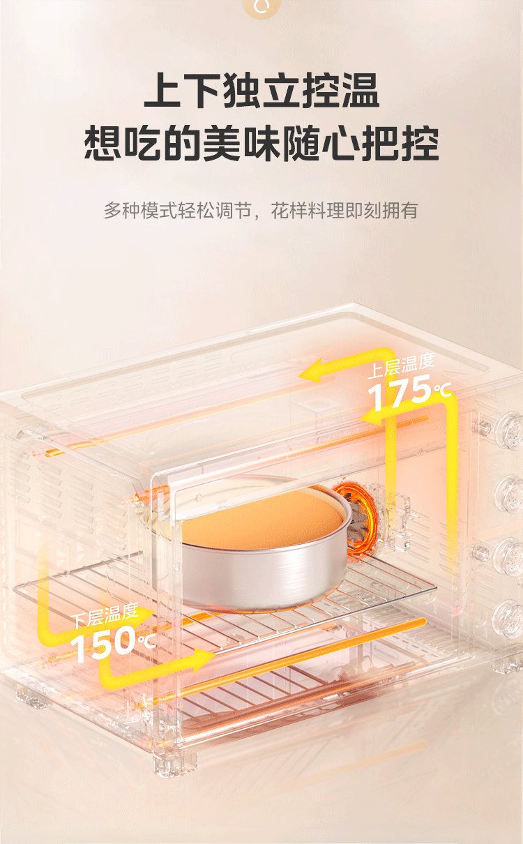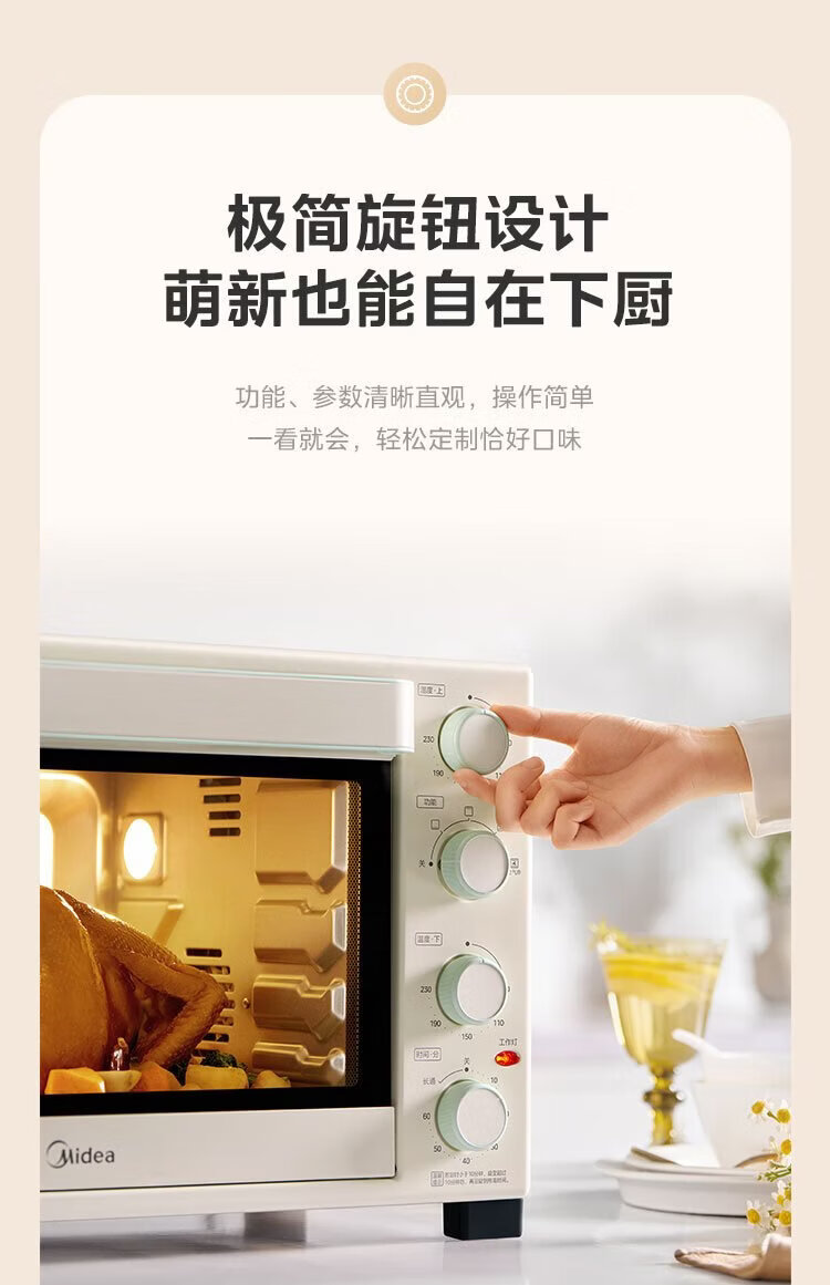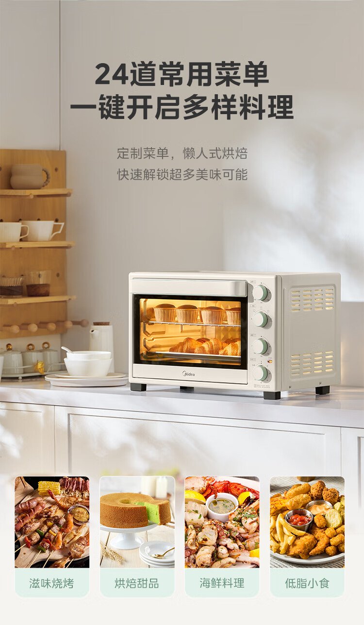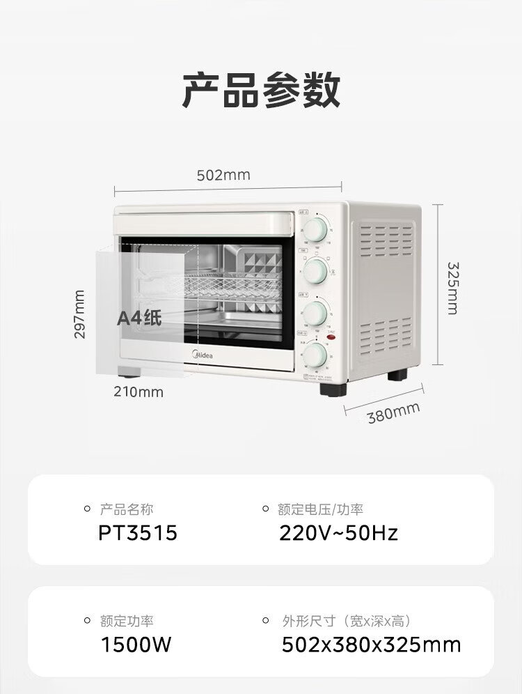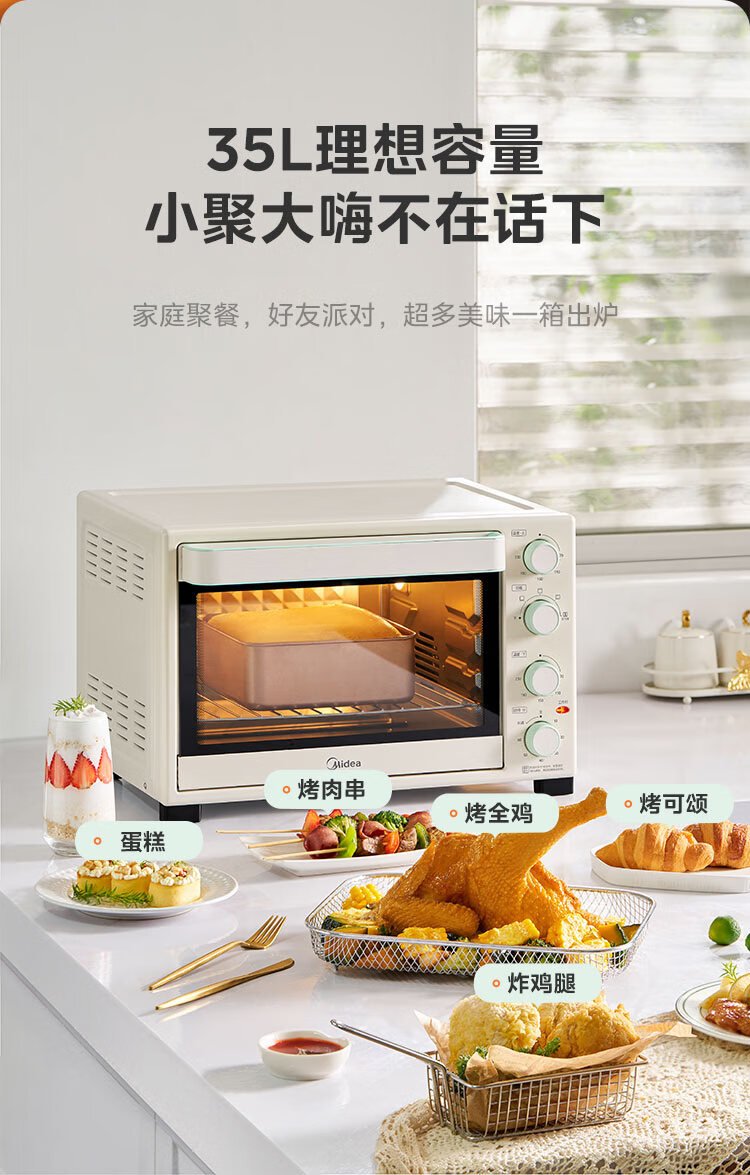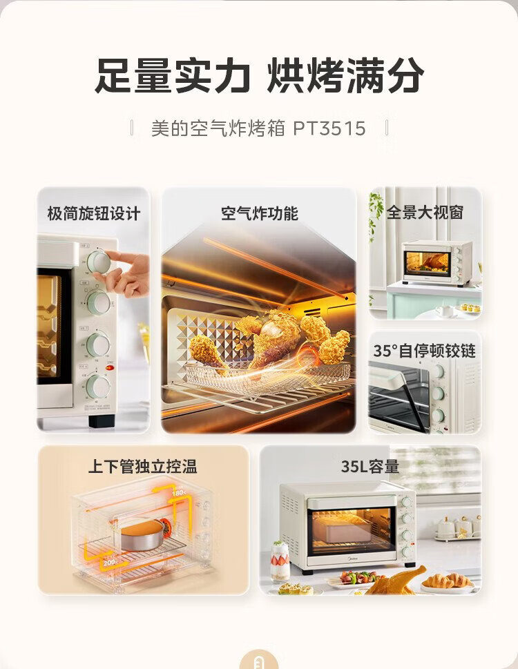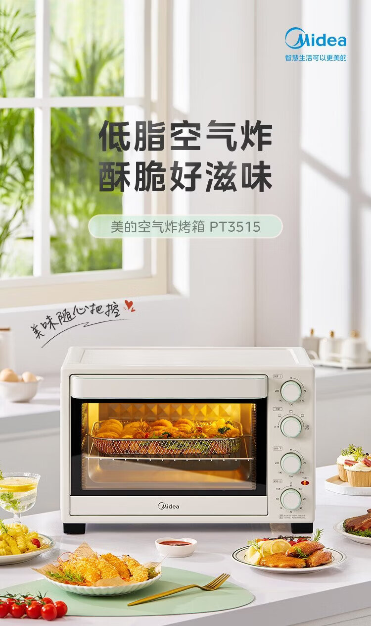 Midea 35L household multifunctional air fryer and electric oven all-in-one machine hot air air frying/independent temperature control/even baking/hot air circulation PT3515