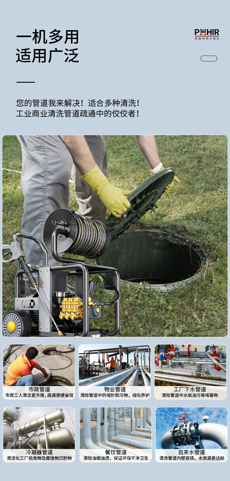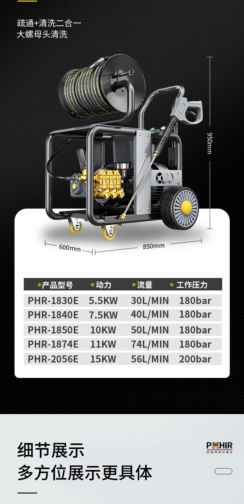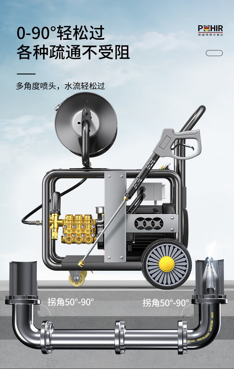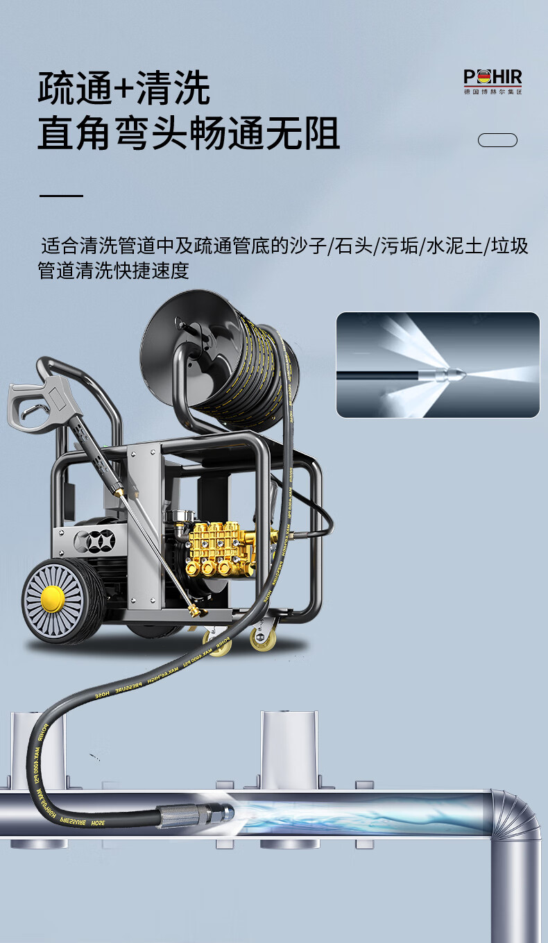 POHIR Bohel high-pressure pipe dredging machine 220V community sewer sewage dredging machine 4.5KW high-power municipal property water rat pipe dredging machine PHR-1622E AR model