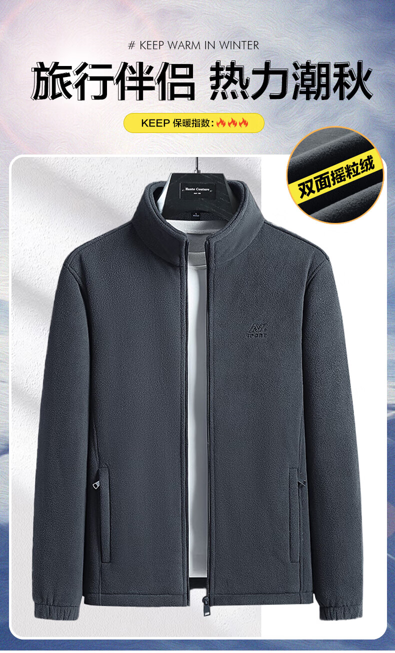 ROMON jacket men's autumn and winter business warm fleece jacket casual polar fleece jacket men's BB9 dark blue XL