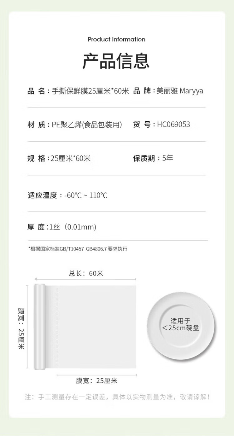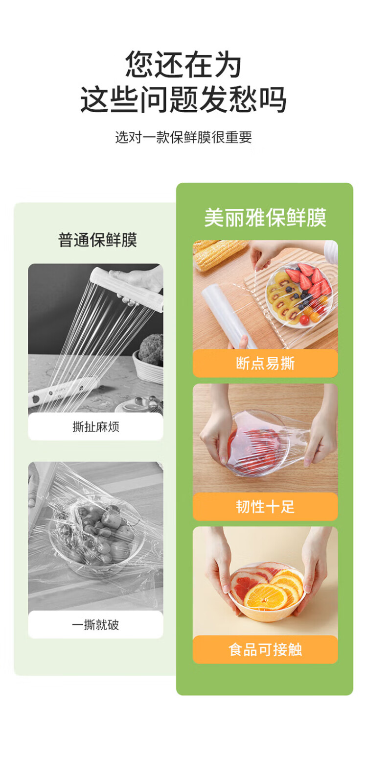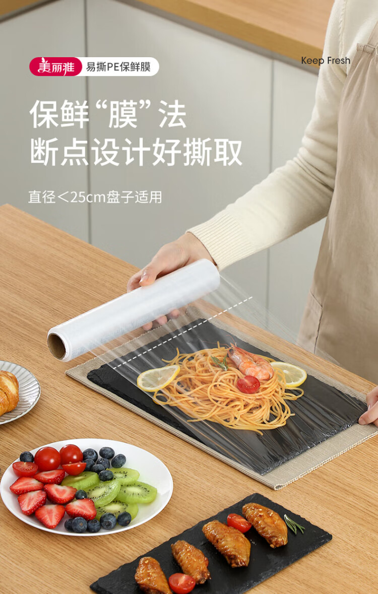 Meiya food-grade disposable cling film point-break type 25cm*60m thickened microwaveable refrigerator home