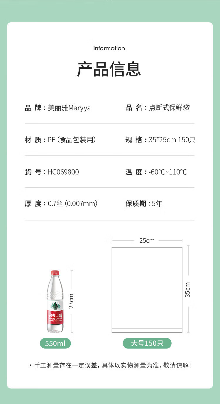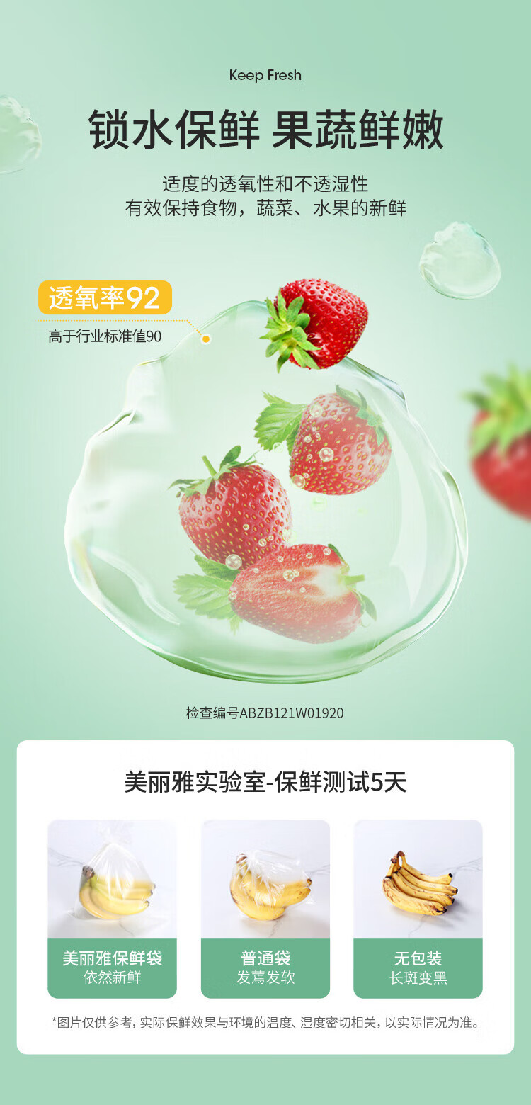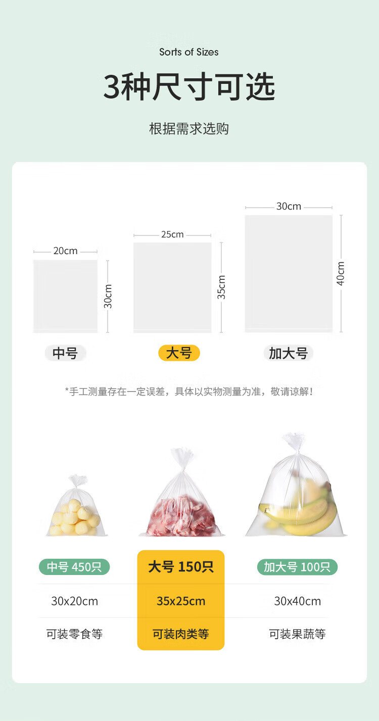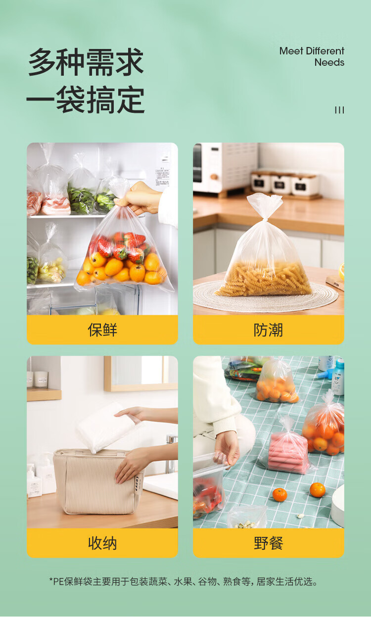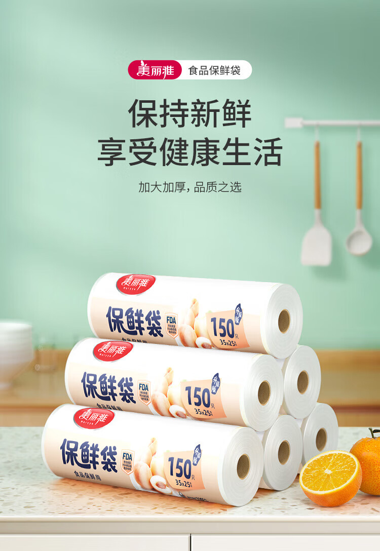 Meliya fresh-keeping bags, 300 large food-grade 35*25cm thickened kitchen refrigerator refrigerated plastic bags