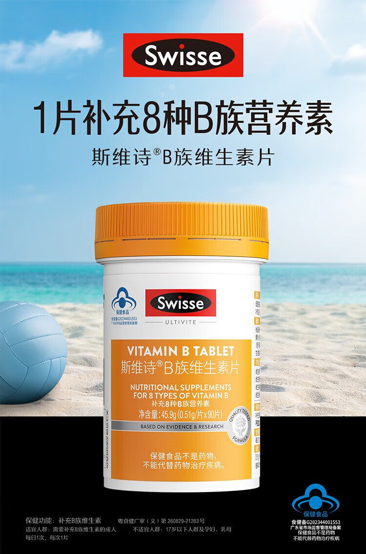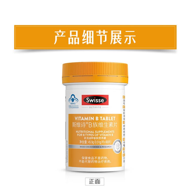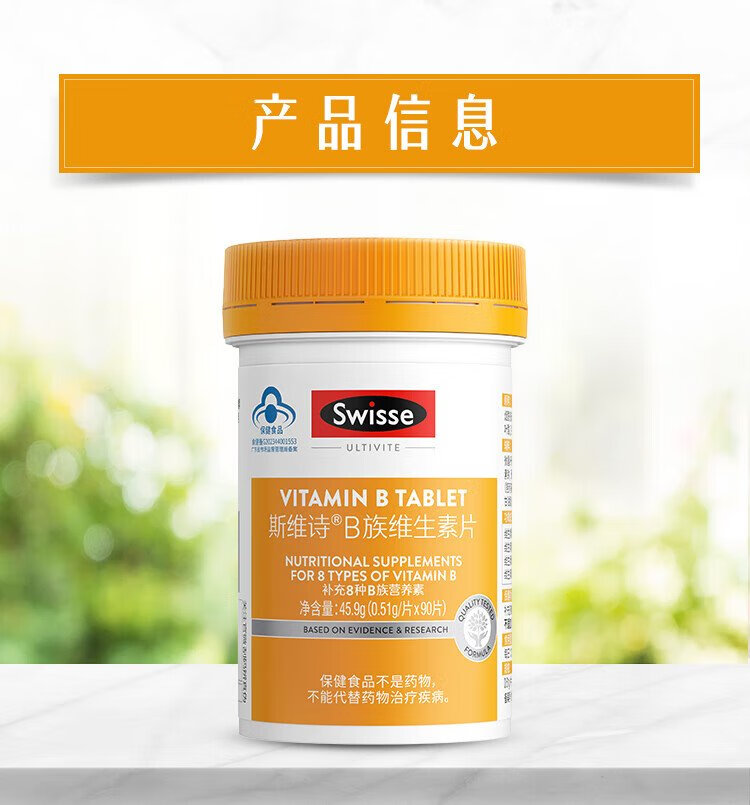 Swisse B complex vitamin tablets contain 8 types of B complex vitamins, blue hat certification, 90 tablets