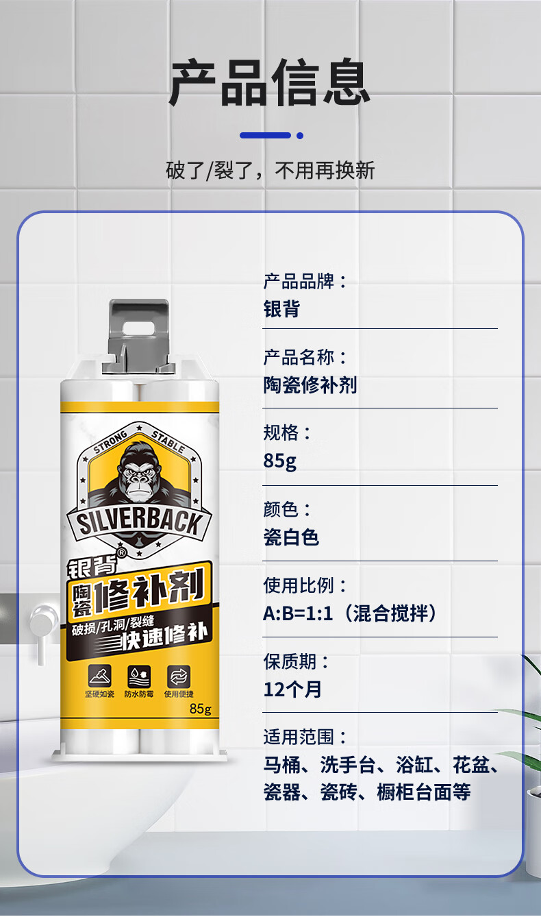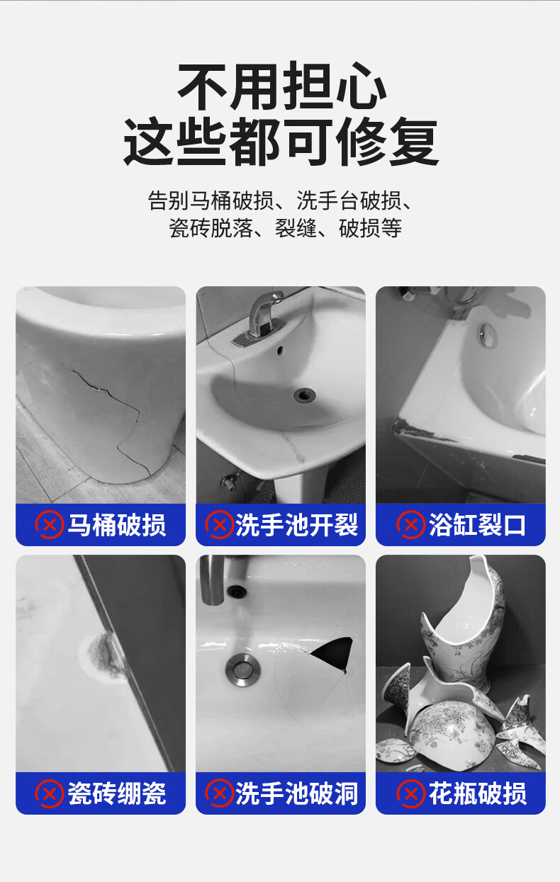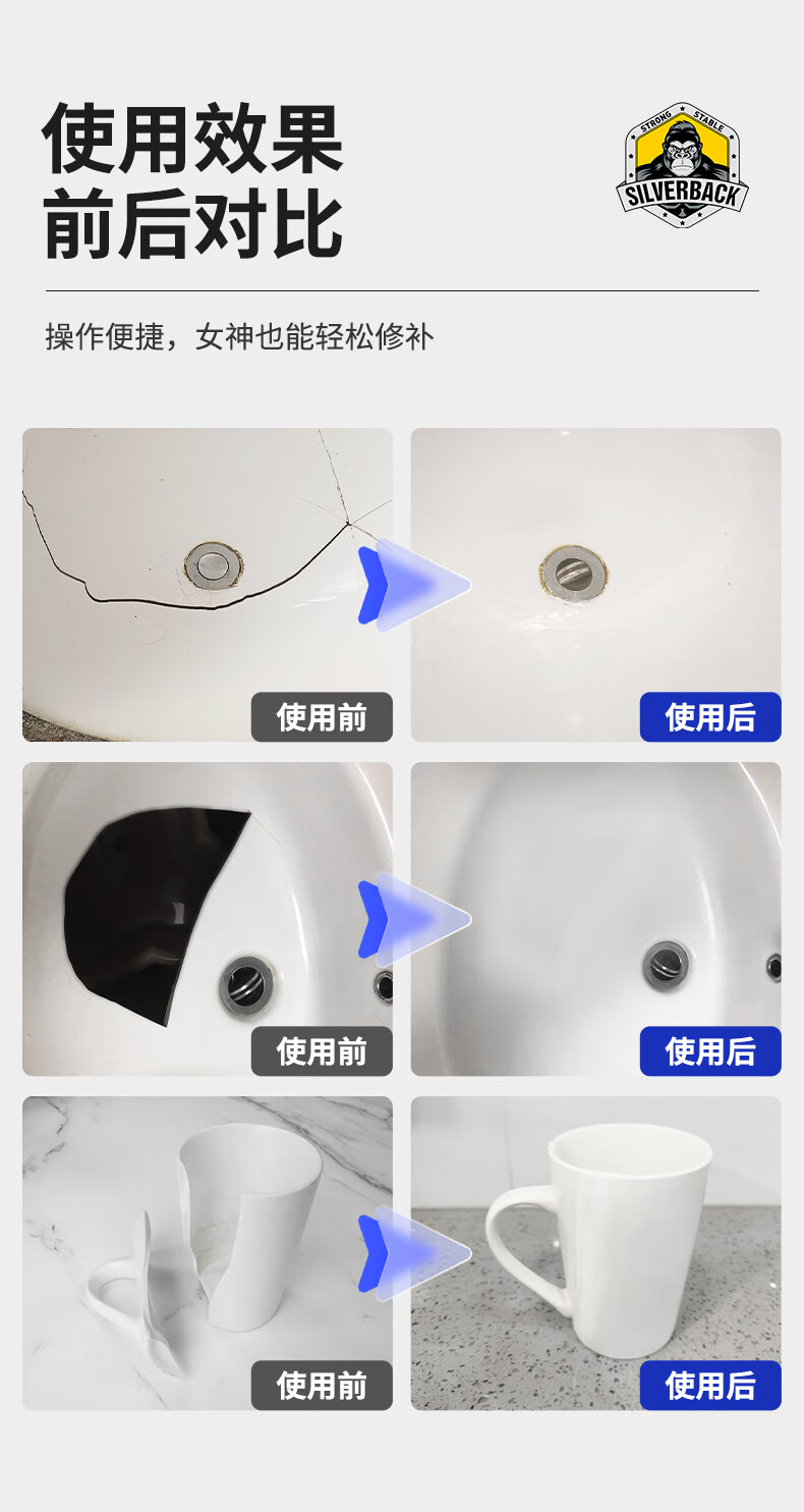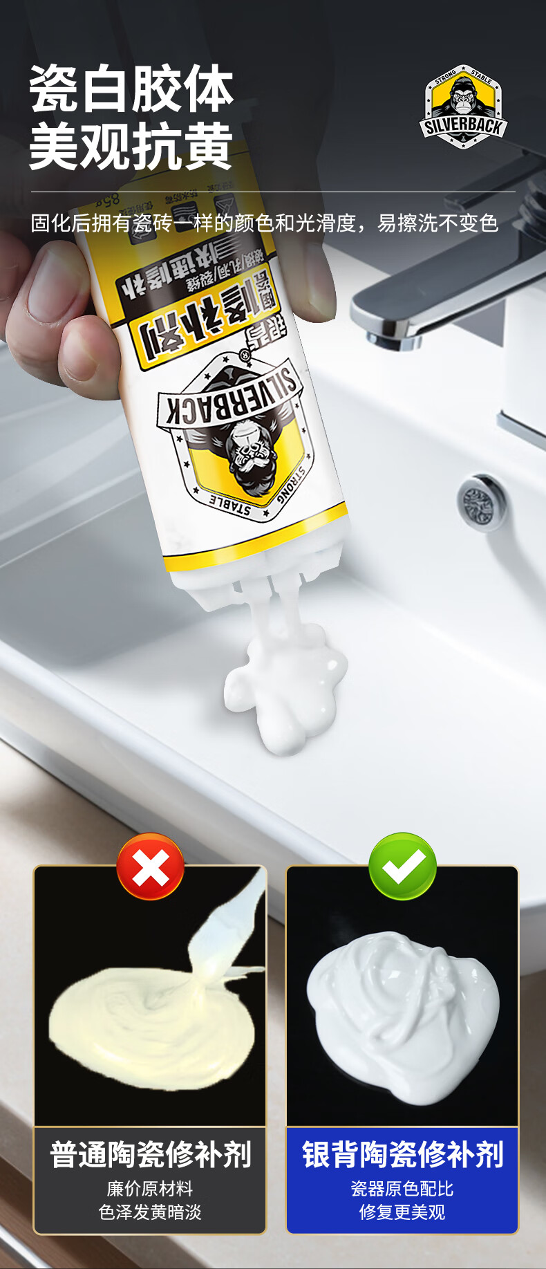 Silver back ceramic repair agent glazed tile cracks enamel pot wash basin repair glue porcelain bathtub filling paste sticky ceramic special glue repair pothole squat toilet toilet tank cover leak repair