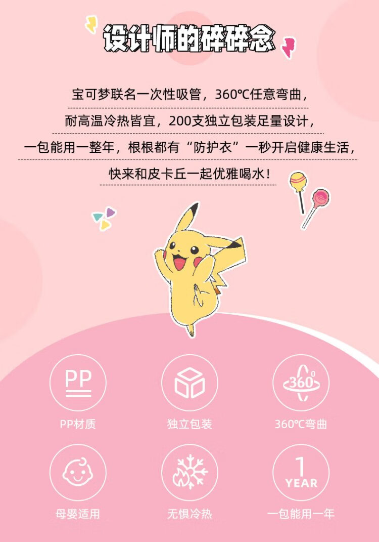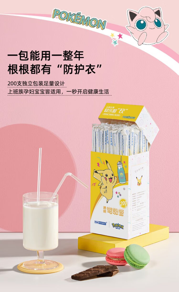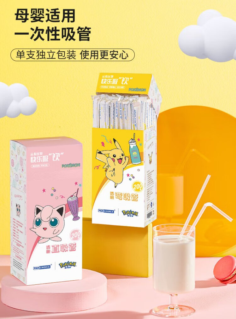 PAKCHOICE Pokemon co-branded straws disposable individually packaged children's baby straws