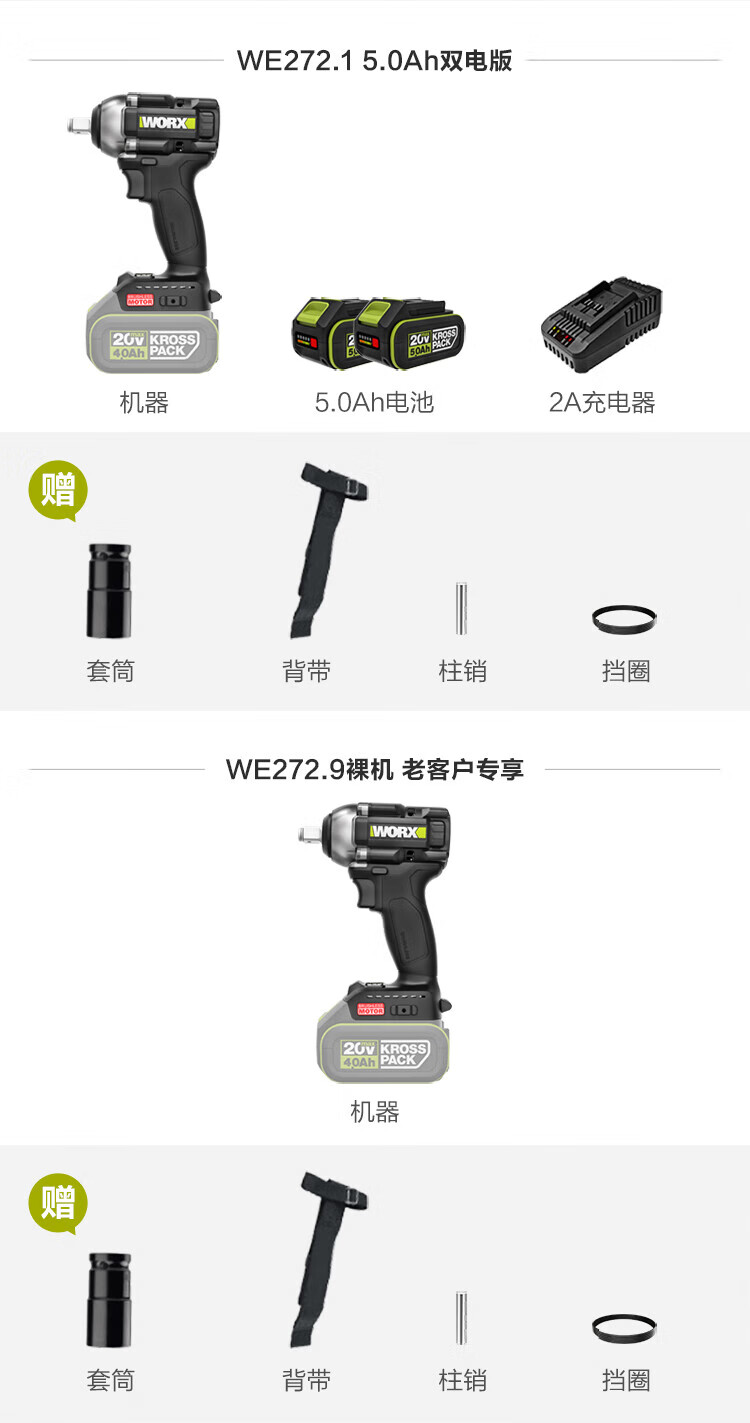 Vickers 20V brushless electric wrench WE272.1 (5.0 dual battery) lithium battery high torque wind cannon rechargeable impact wrench