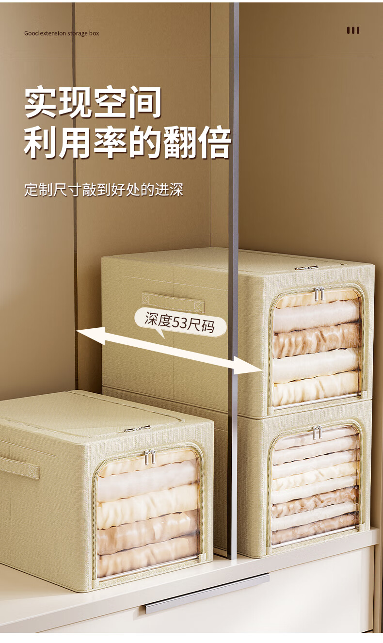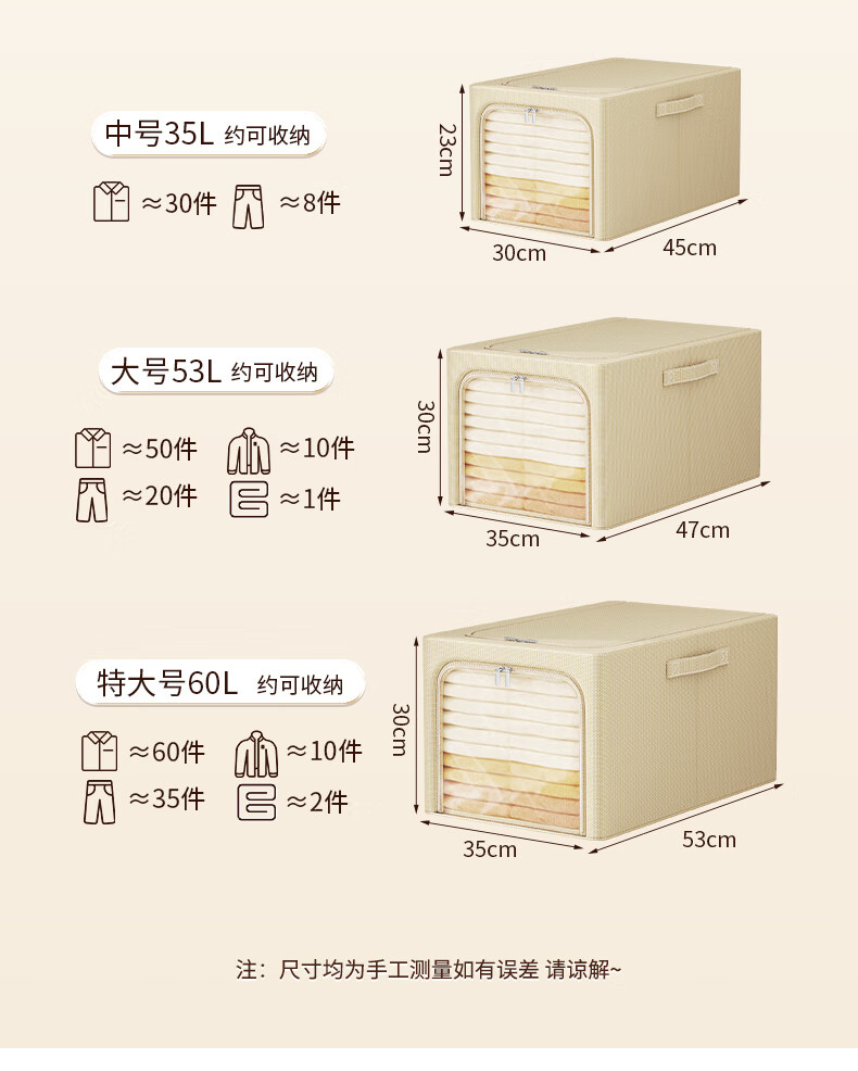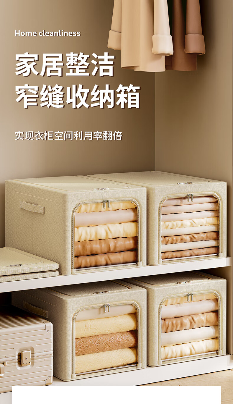 Bonnymeijia fabric storage box extended wardrobe clothes thin quilt foldable storage box 35L 45*30*23