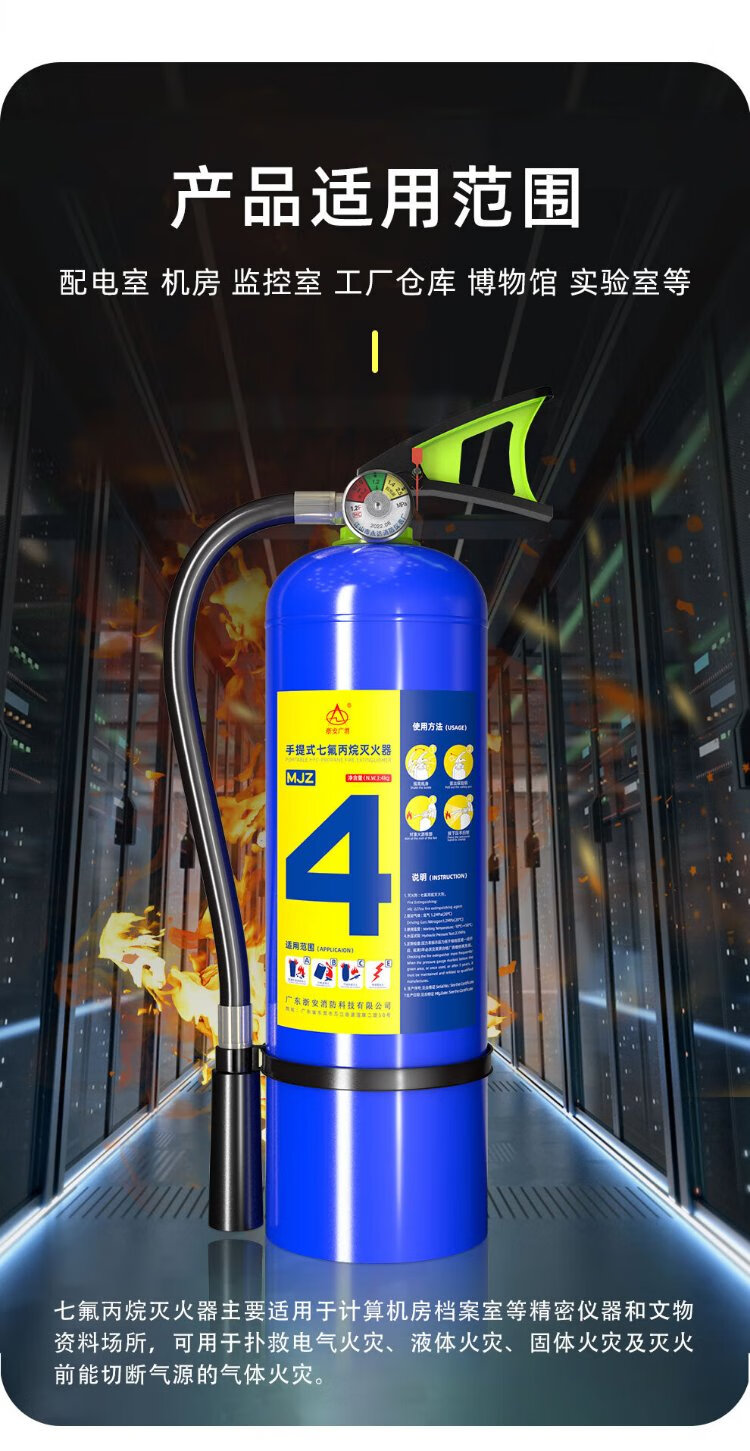 Zhe'an Guangxiao 4kg heptafluoropropane portable fire extinguisher 4kg gas fire extinguishing equipment MJZ/4