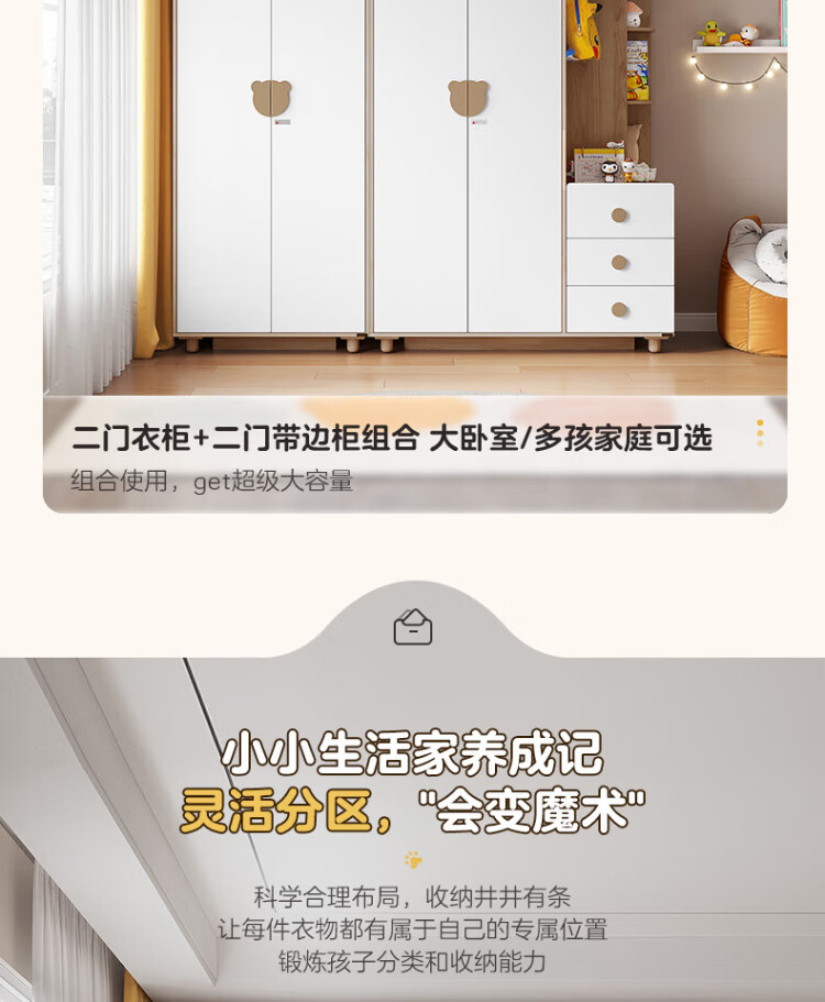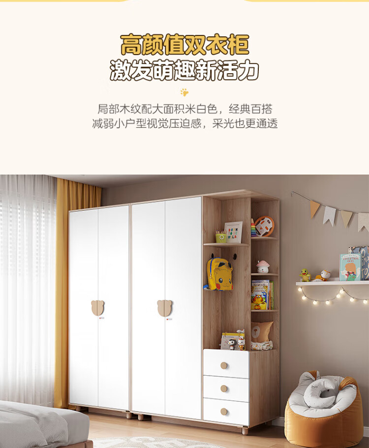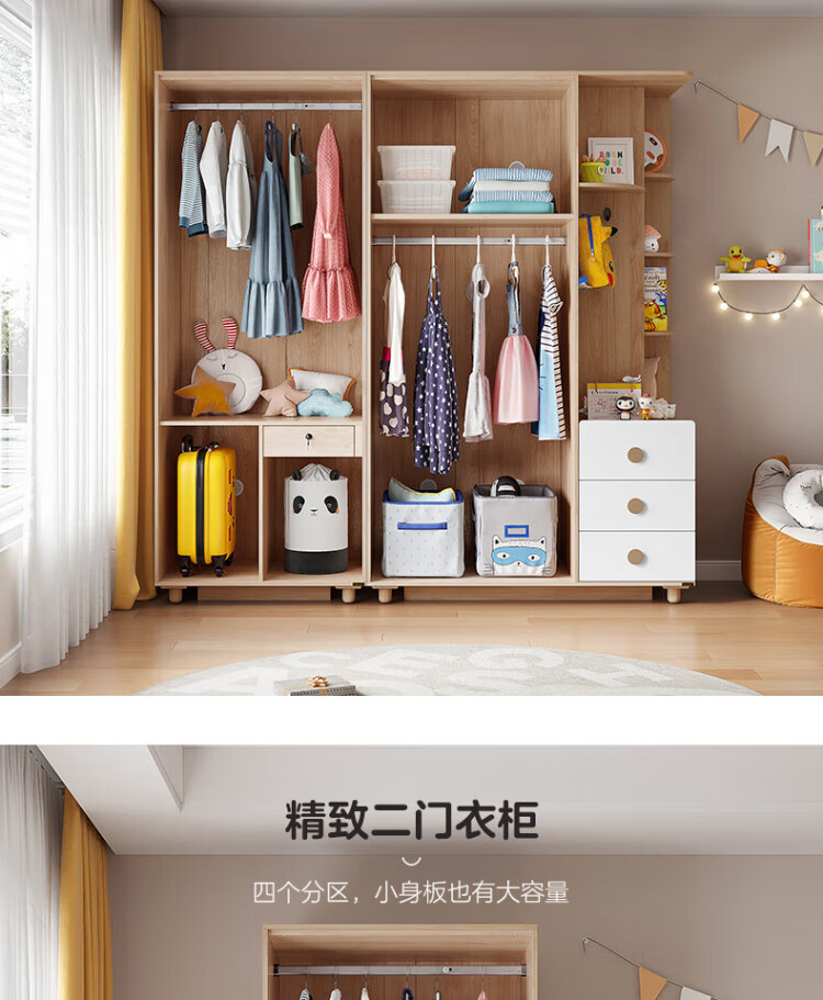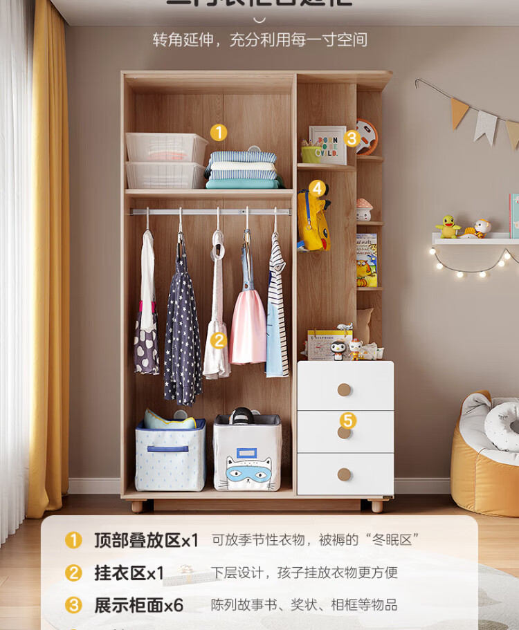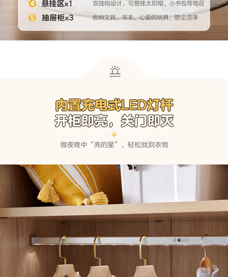 Quanyou Home Children's Wardrobe Simple Partitioned Storage Cabinet LED Smart Light Bedroom Storage Cabinet High-Looking Wardrobe