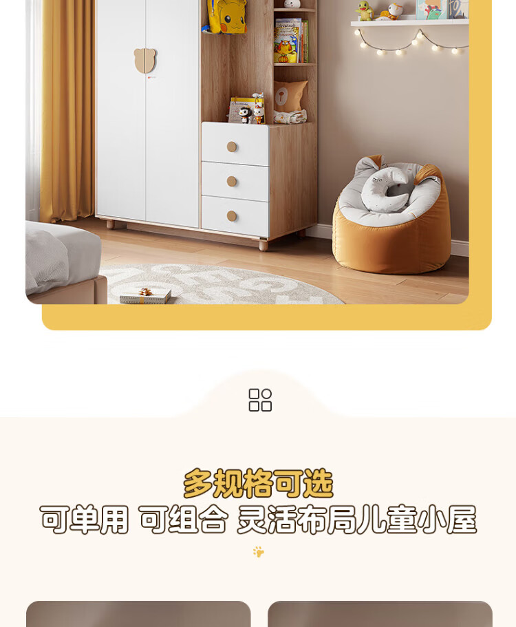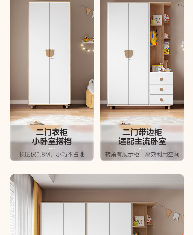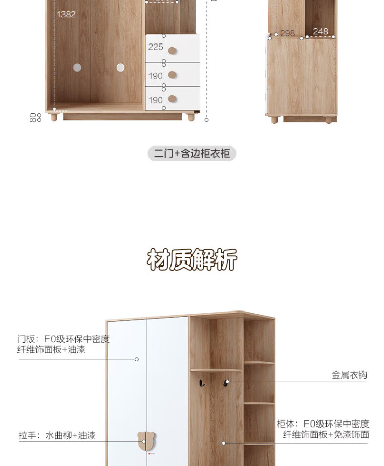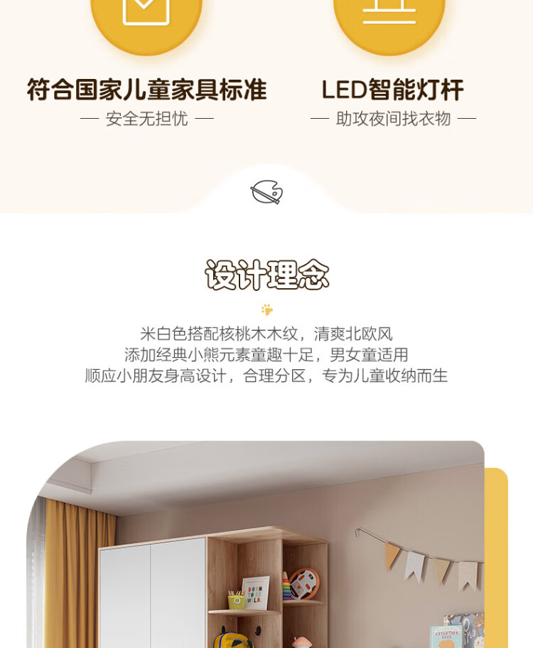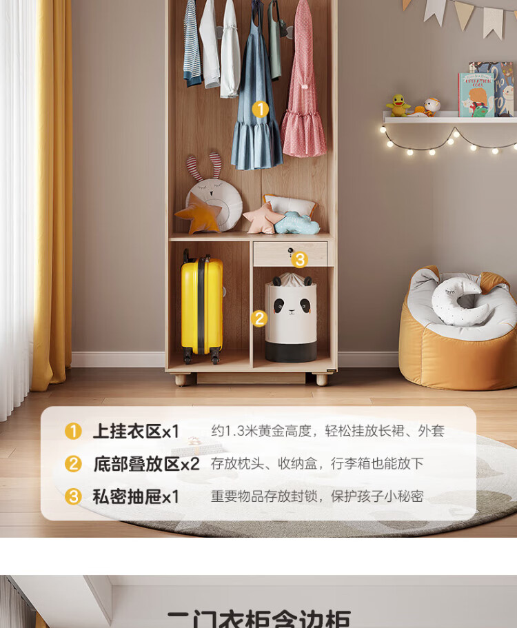 Quanyou Home Children's Wardrobe Simple Partitioned Storage Cabinet LED Smart Light Bedroom Storage Cabinet High-Looking Wardrobe