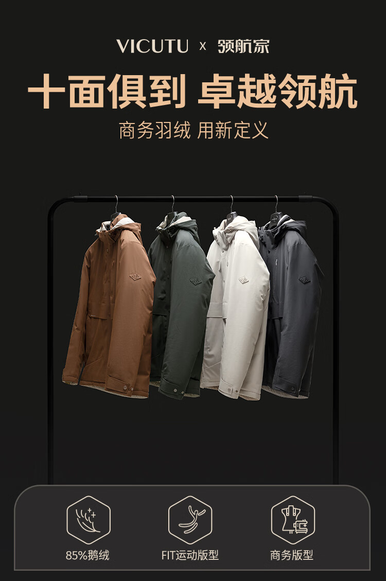 VICUTU Pilot Goose Down Jacket Business Commuting Warm Winter Jacket Black 175/92A