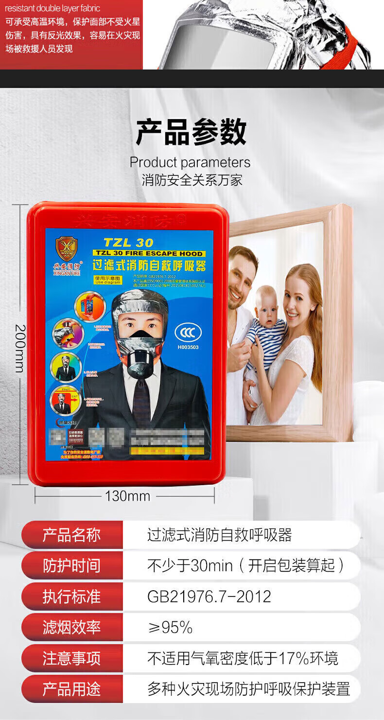 Xing'an fire mask gas mask filter fire self-rescue respirator fire escape smoke mask TZL30