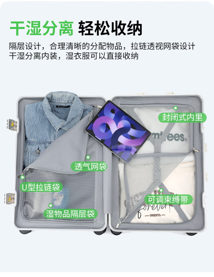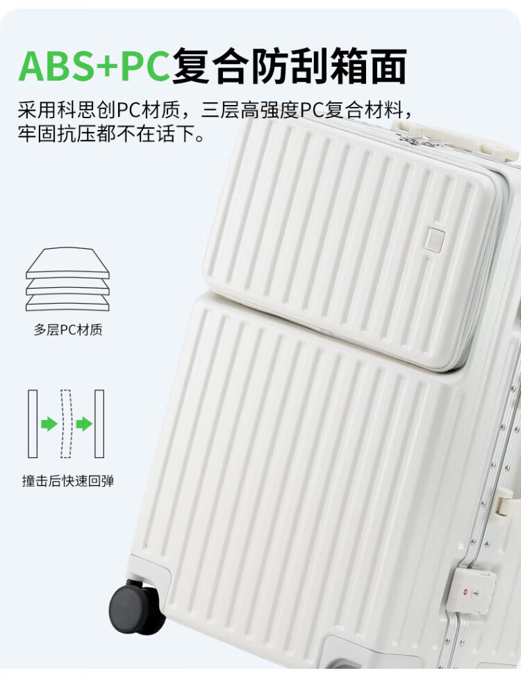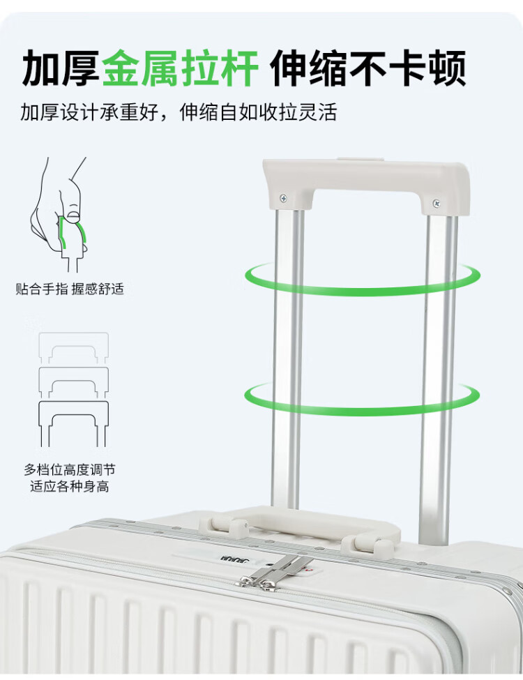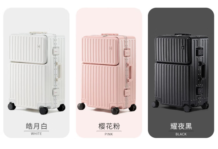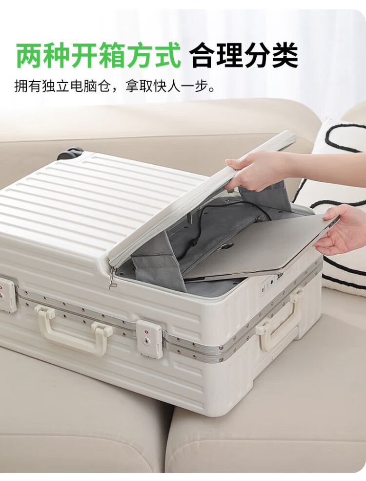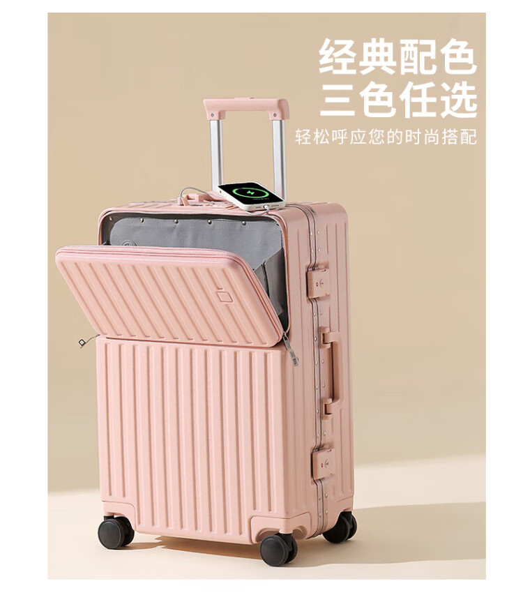 DULA aluminum frame front opening cup holder suitcase trolley case USB charging suitcase password box Haoyue White 24 inches