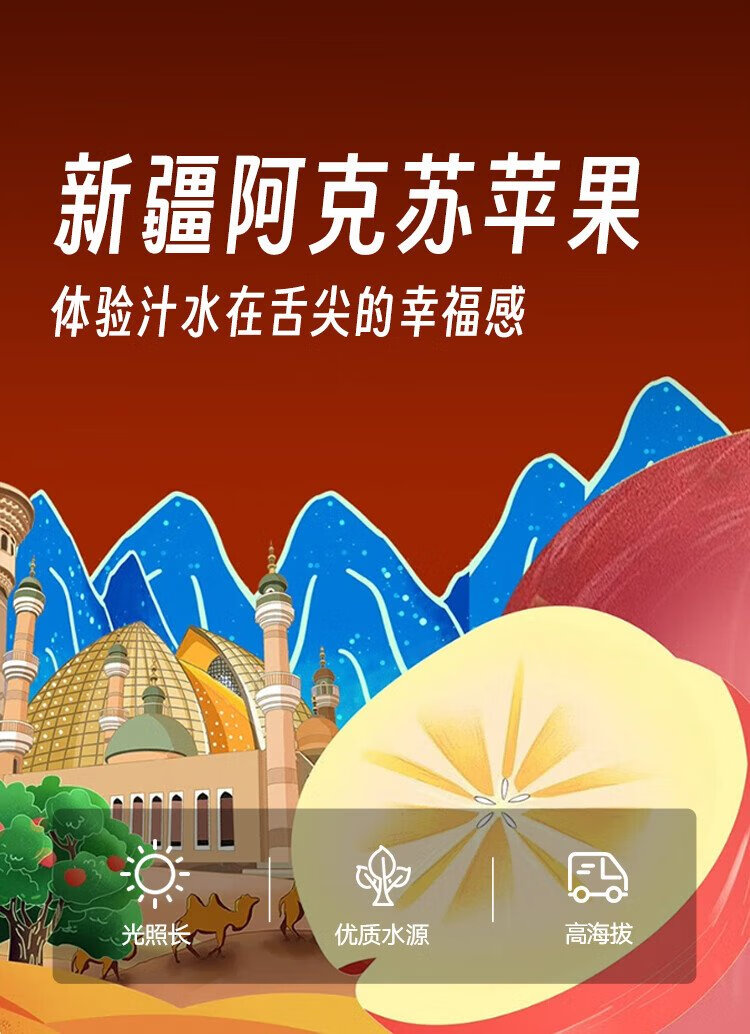 Jingxiansheng Authentic Xinjiang Aksu Apple Crisp Sweet Apple 4 Pack Fruit Diameter 80-85mm Fresh Fruit