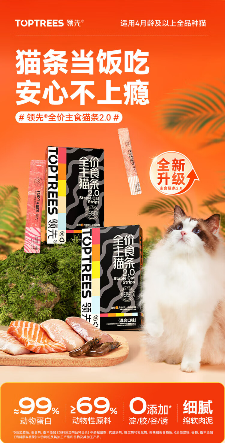Leading staple food cat strips 14g*5 cat snacks canned cat food full price wet food (new and old styles shipped randomly)