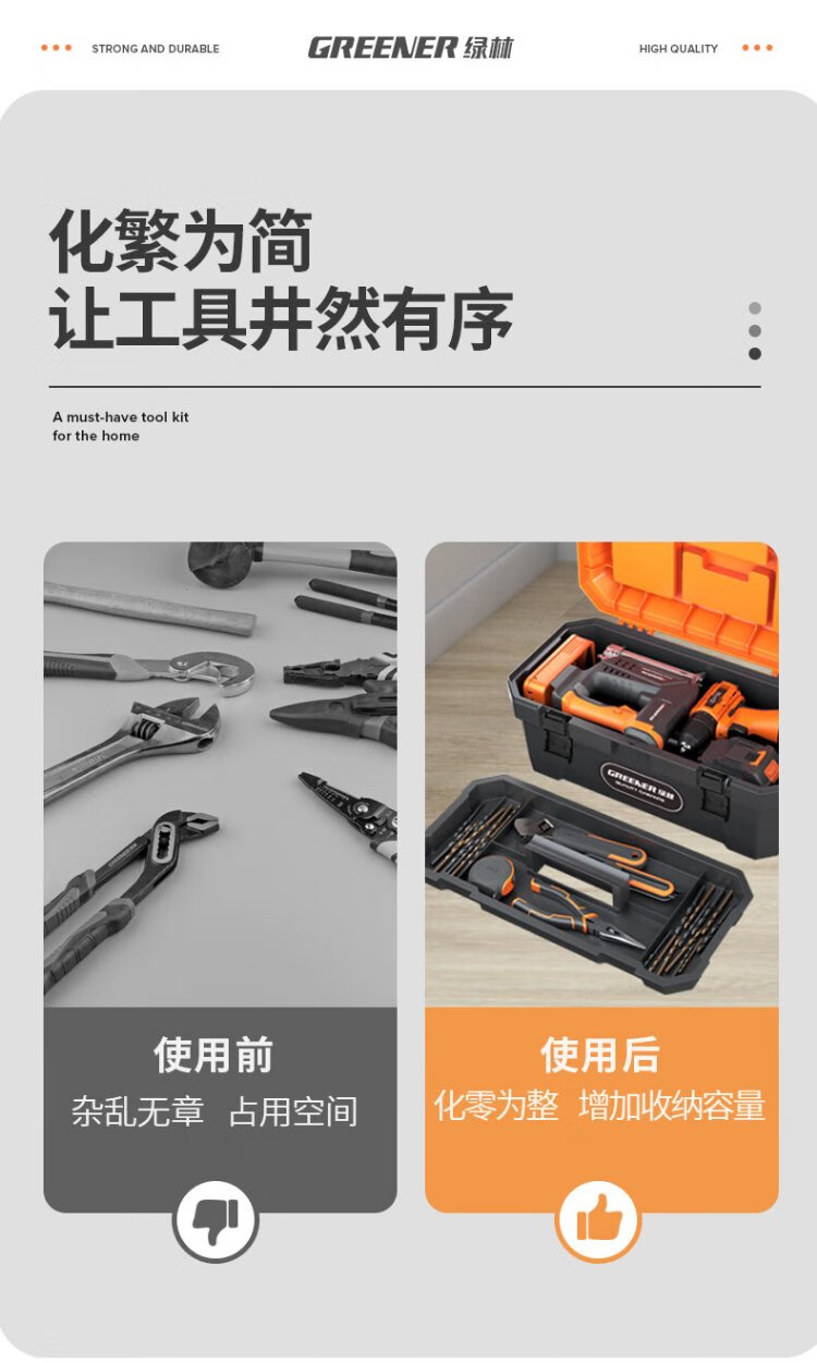 GREENER tool box 20-inch storage box hardware large-capacity electrician home portable car multi-function repair universal
