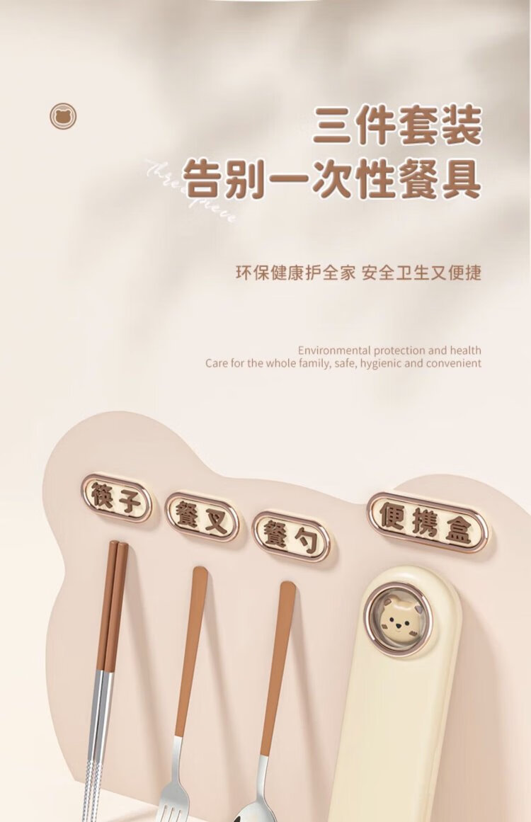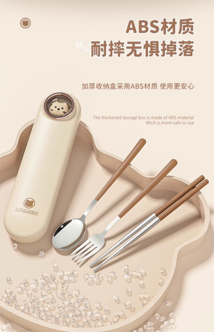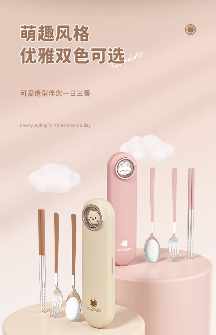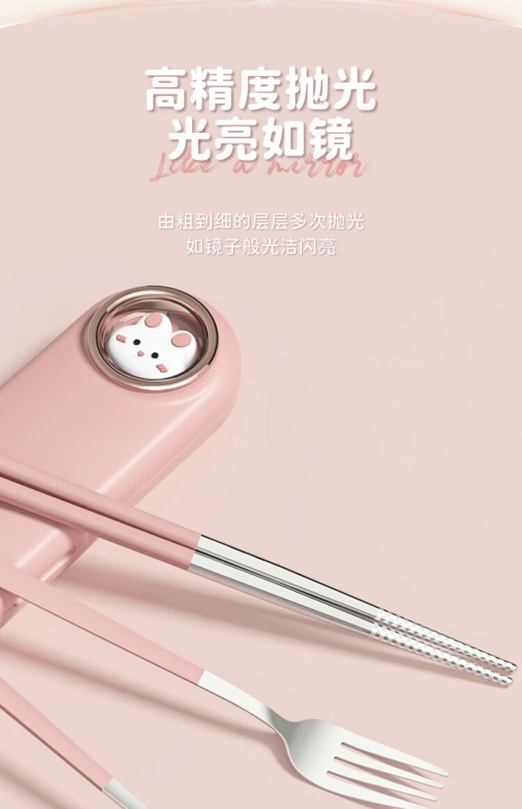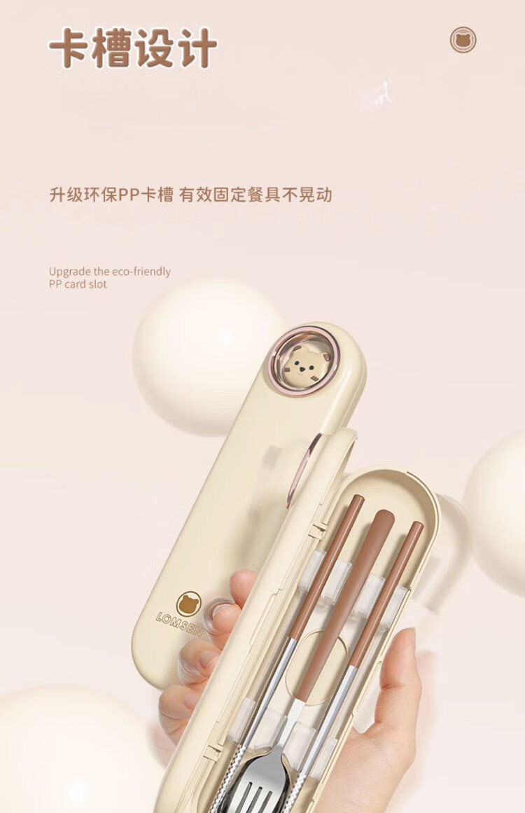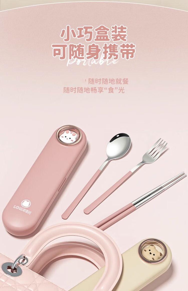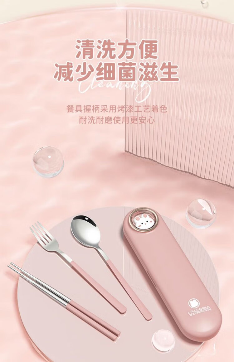COOKSS children's chopsticks and spoon set portable box tableware primary school students special storage box three-piece set with pink