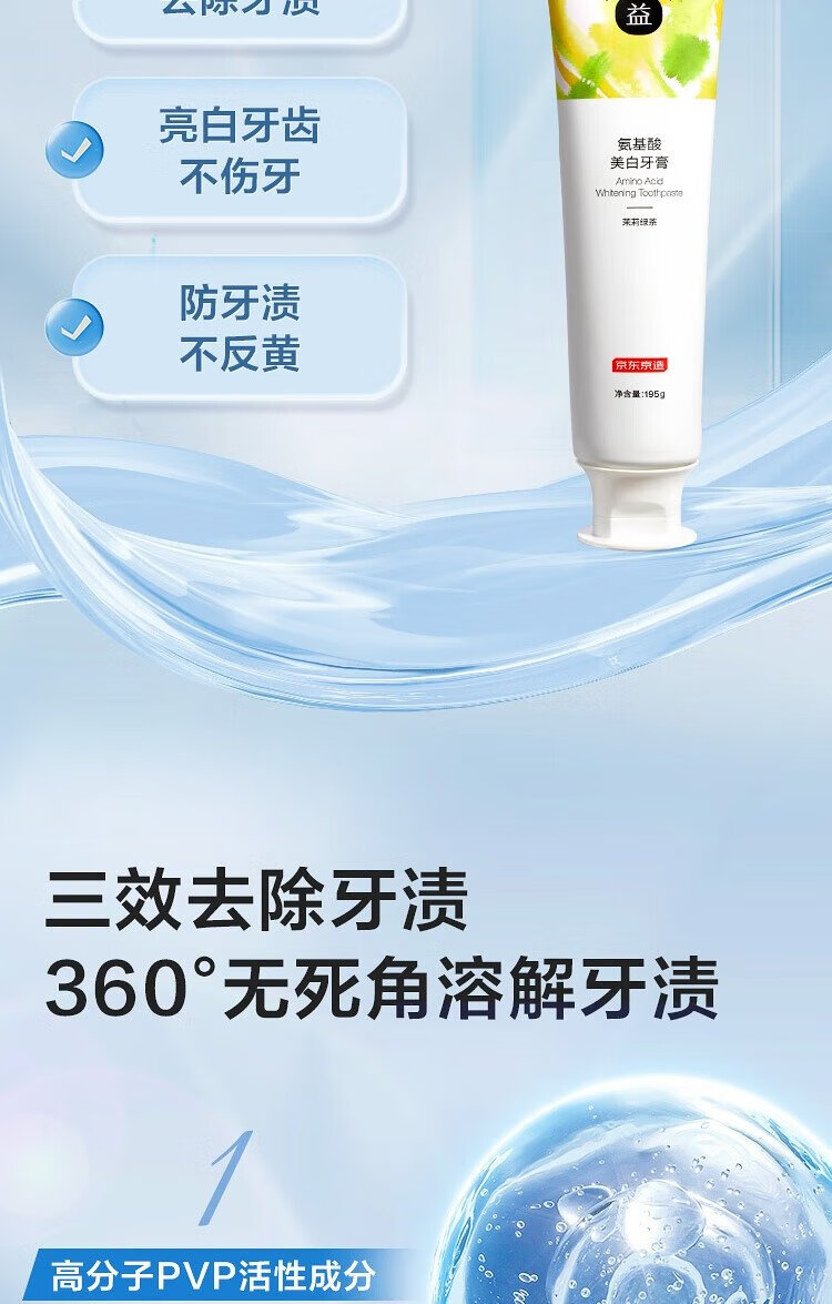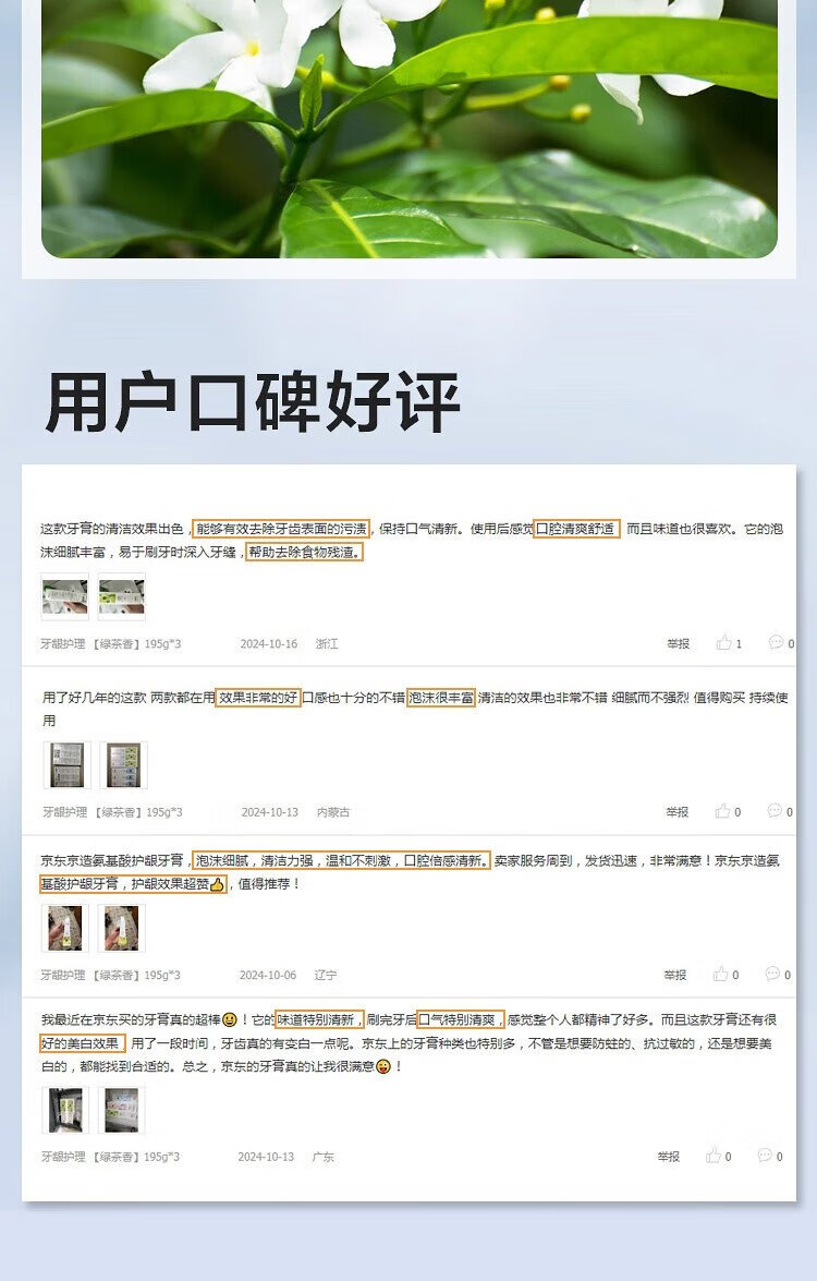 Jingdong Made Amino Acid Gum Protecting Whitening Toothpaste 195g*3 Jasmine Green Tea Bad Breath Remove Yellowing Remove Teeth Stains Remove Smoke Stains Tartar Refreshing