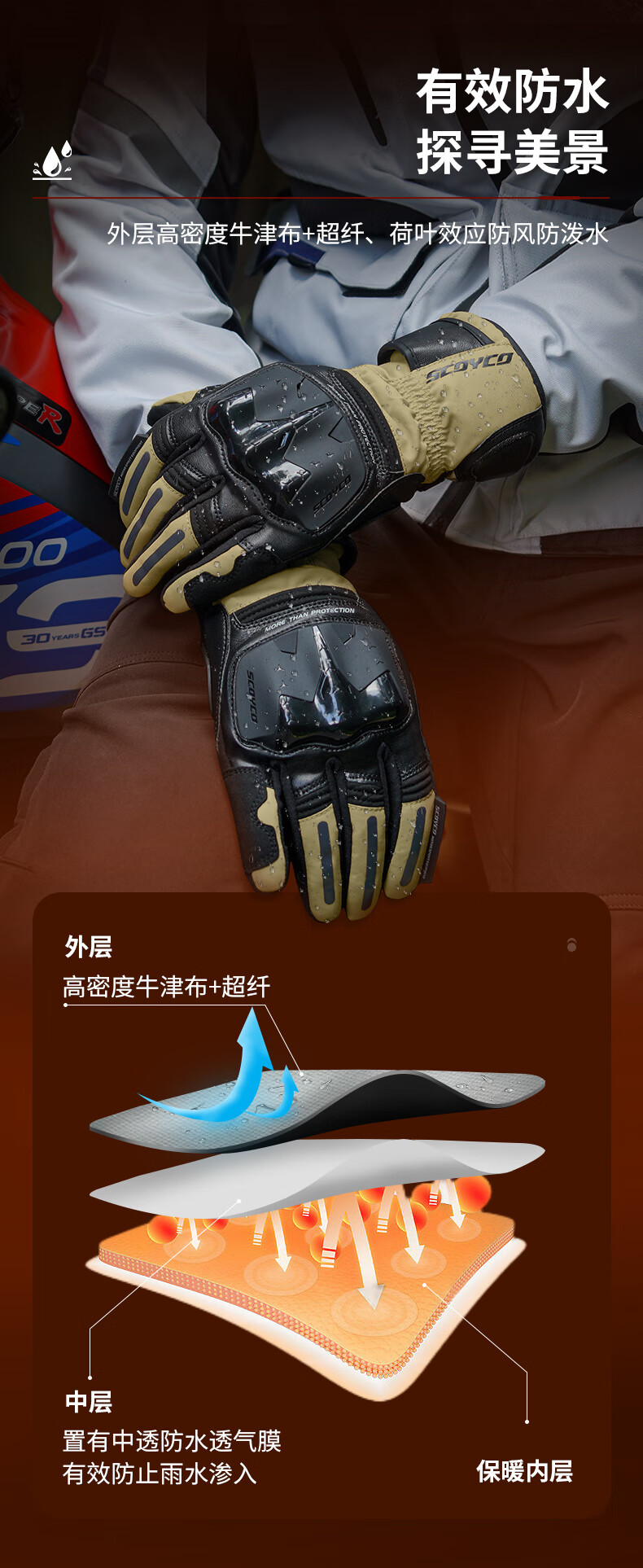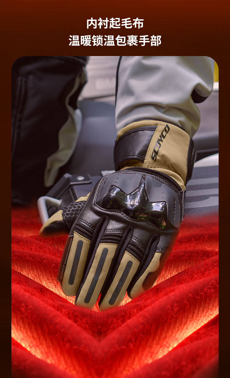 SCOYCO motorcycle riding gloves winter motorcycle racing waterproof warm and cold protection rider anti-fall MC158 light khaki 2XL