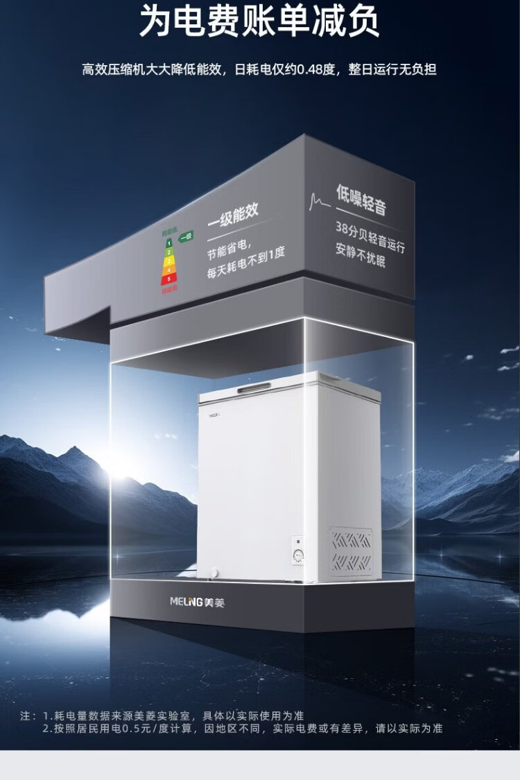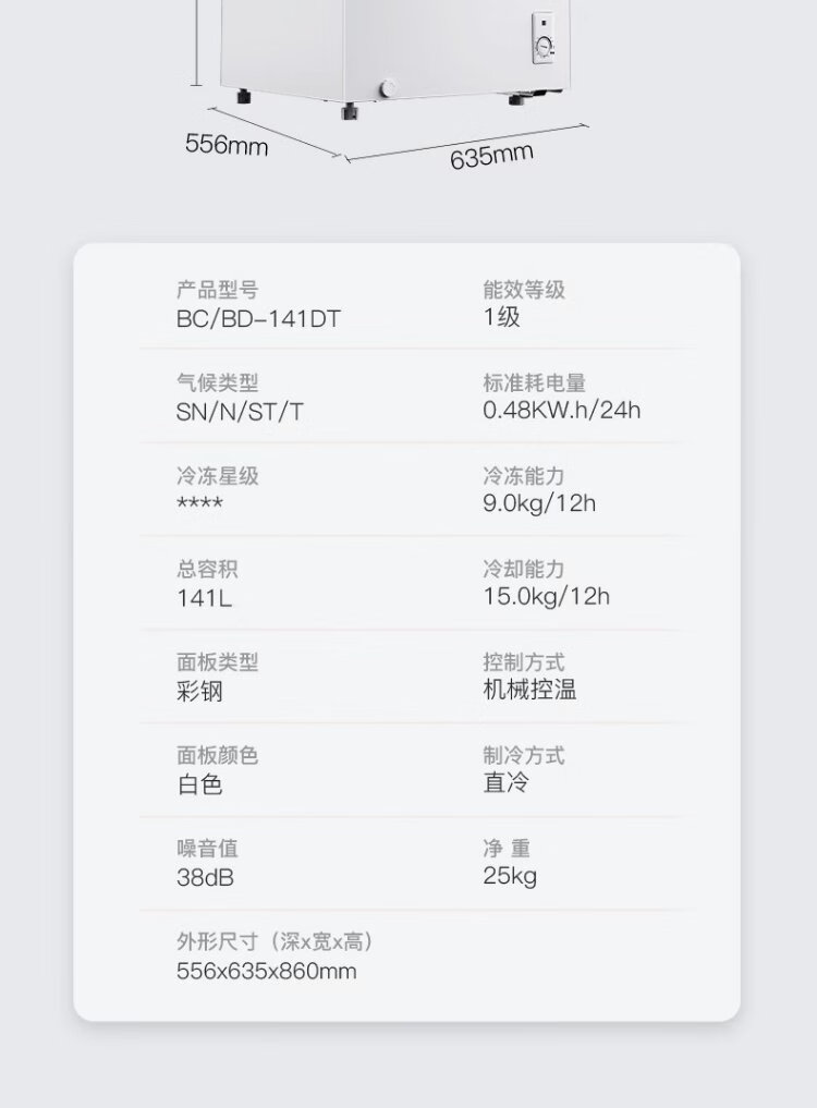 MeiLing 141L single temperature household freezer low frost direct cooling fixed frequency first level energy efficiency-35 quick freezing mechanical temperature control color steel panel BC/BD-141DT white national subsidy