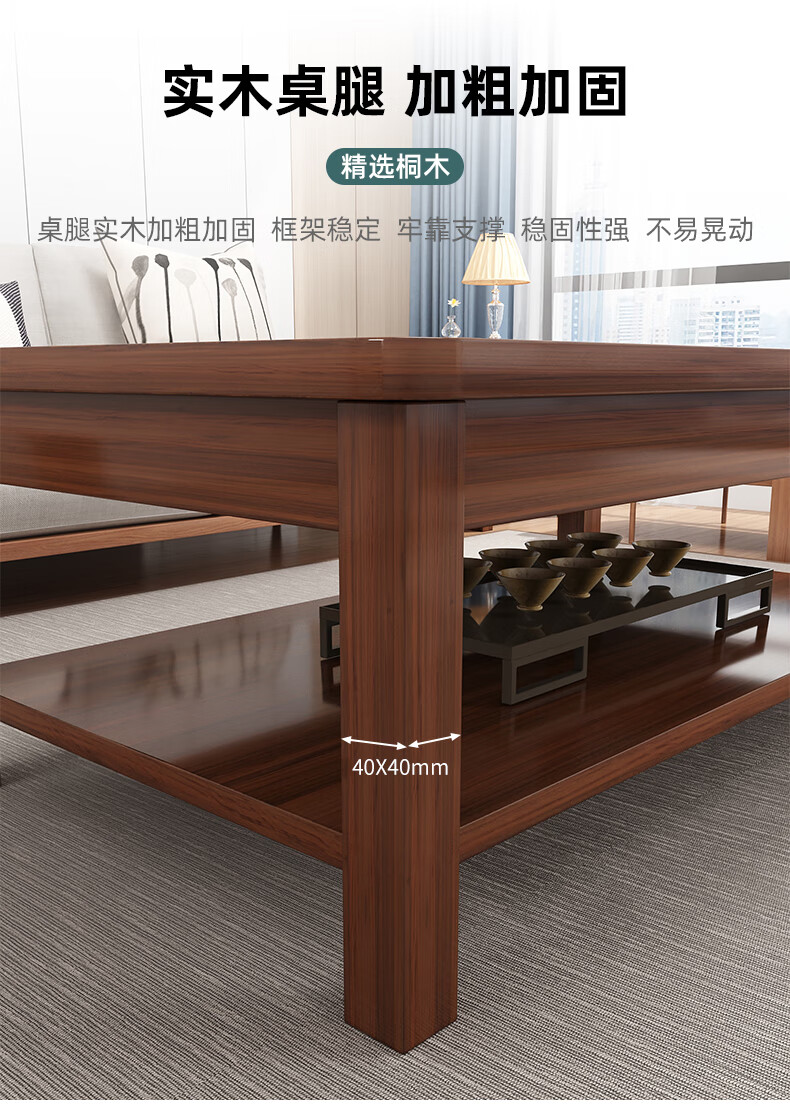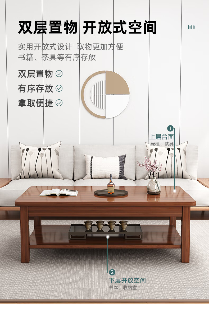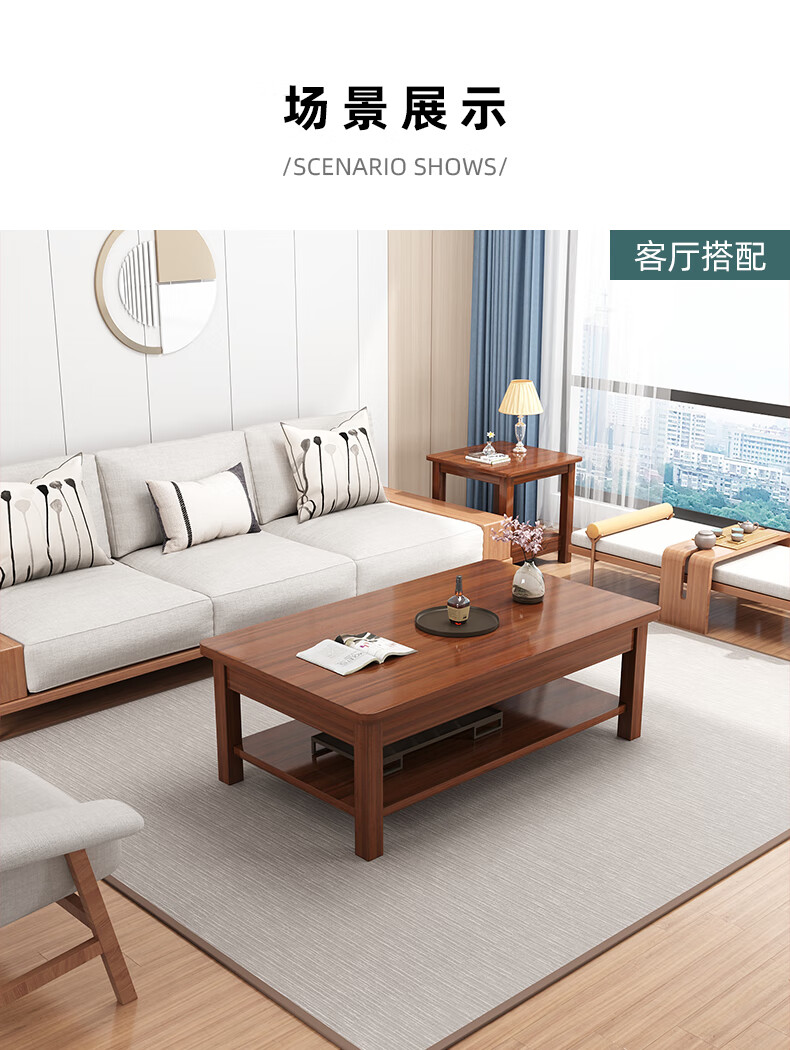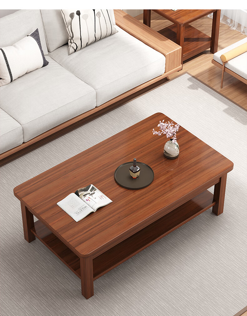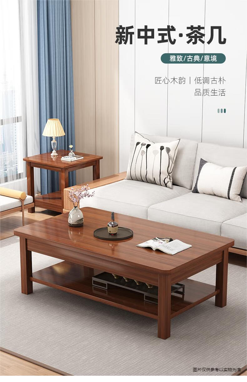Xiaojiangcai solid wood coffee table living room home modern simple office table small apartment new Chinese tea table walnut double layer 100