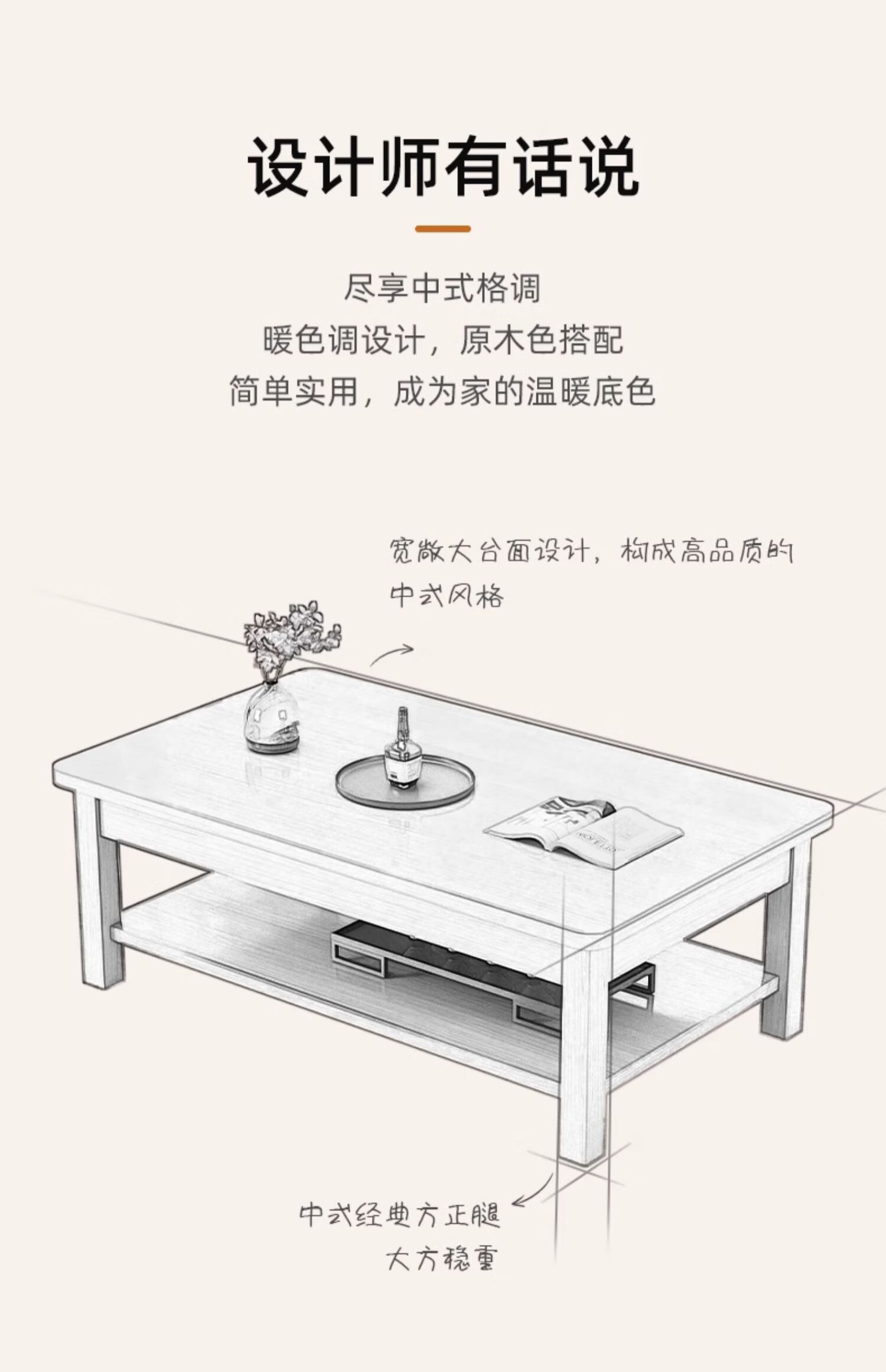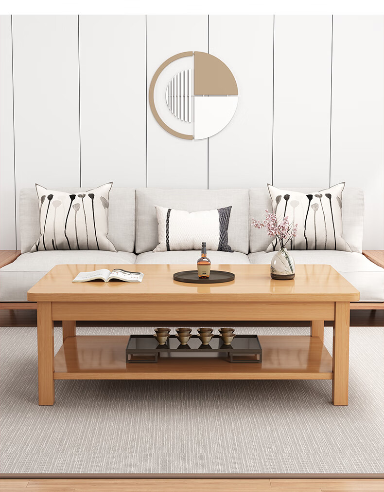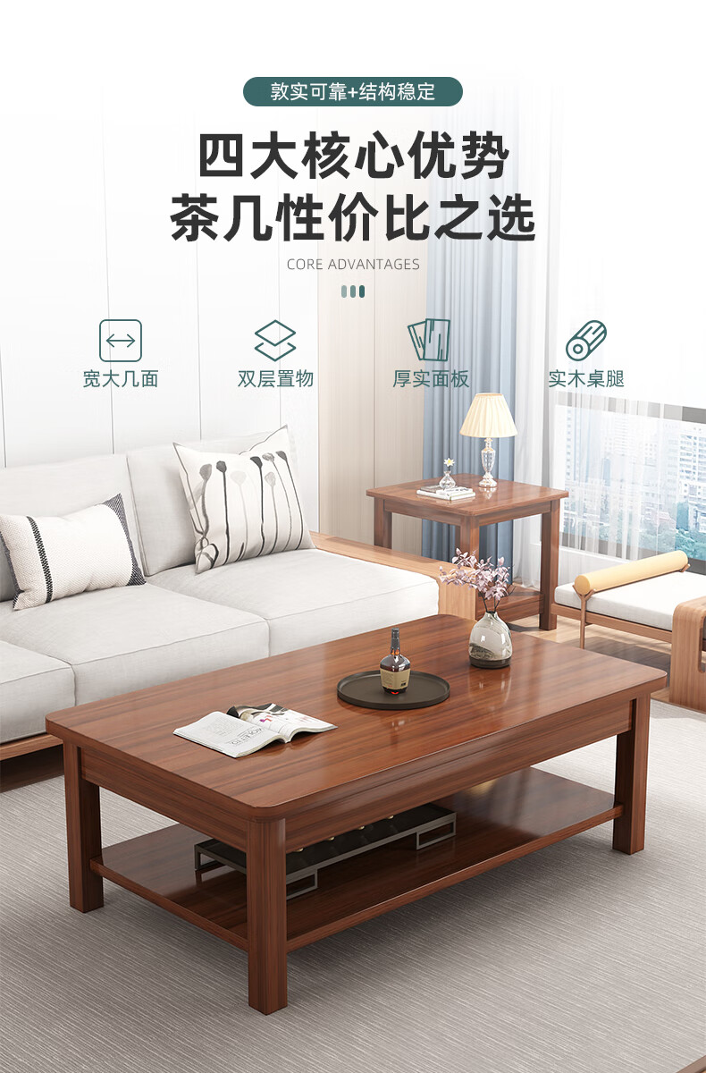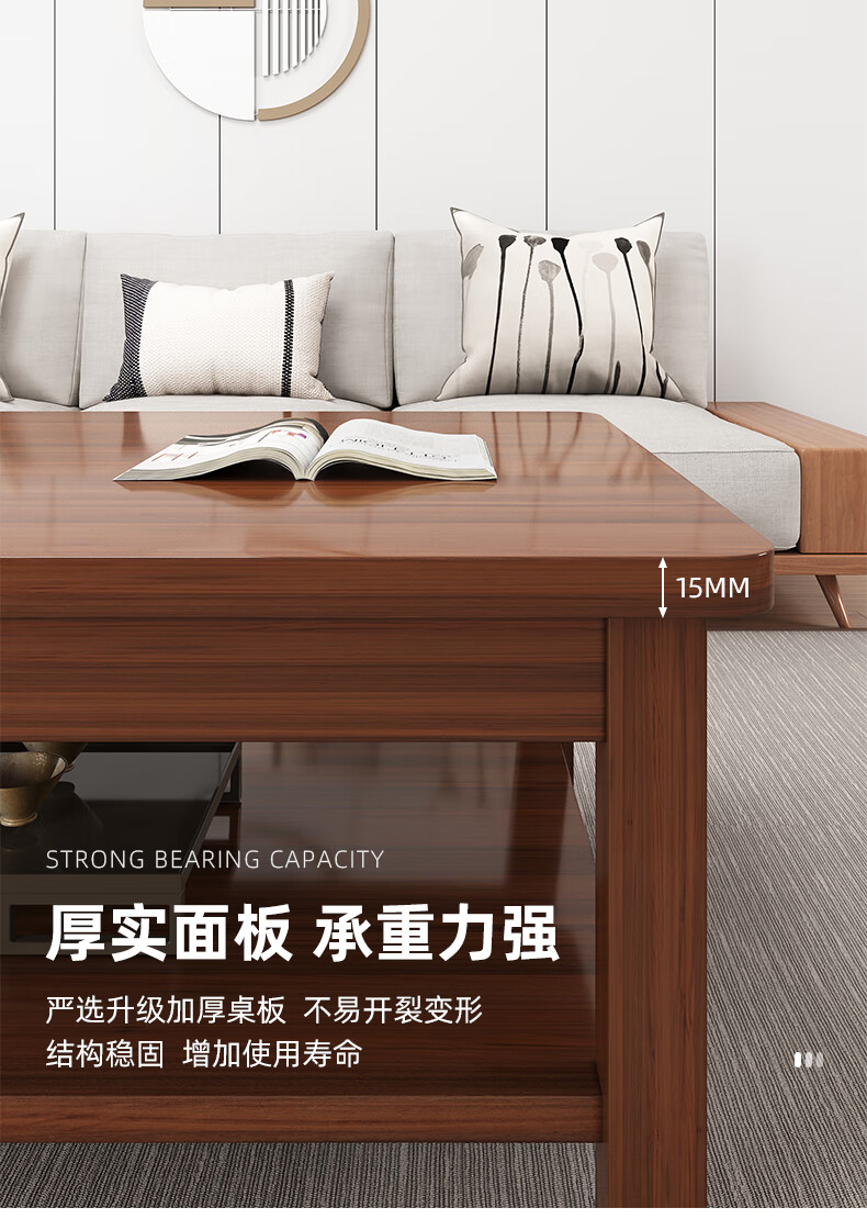 Xiaojiangcai solid wood coffee table living room home modern simple office table small apartment new Chinese tea table walnut double layer 100
