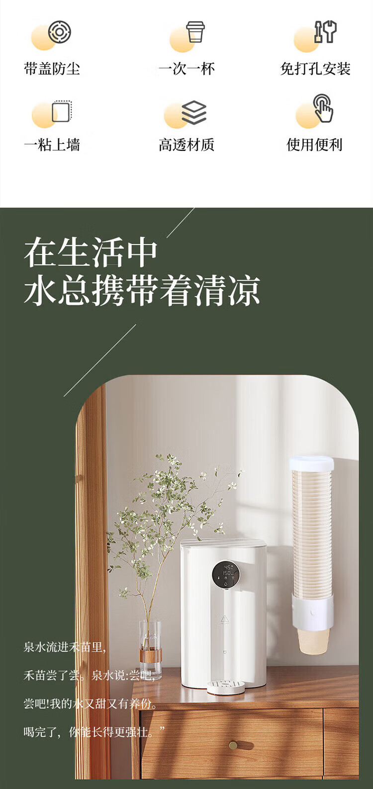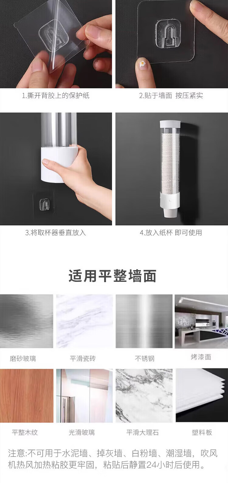 Dimple disposable cup holder cup holder without punching automatic wall-mounted dust-proof paper cup holder water dispenser cup storage