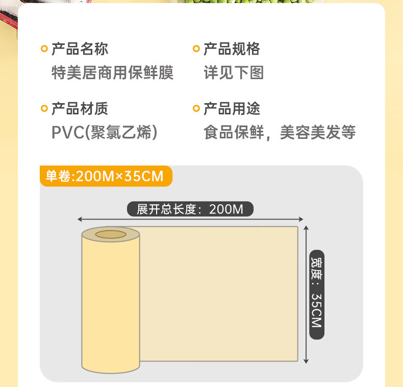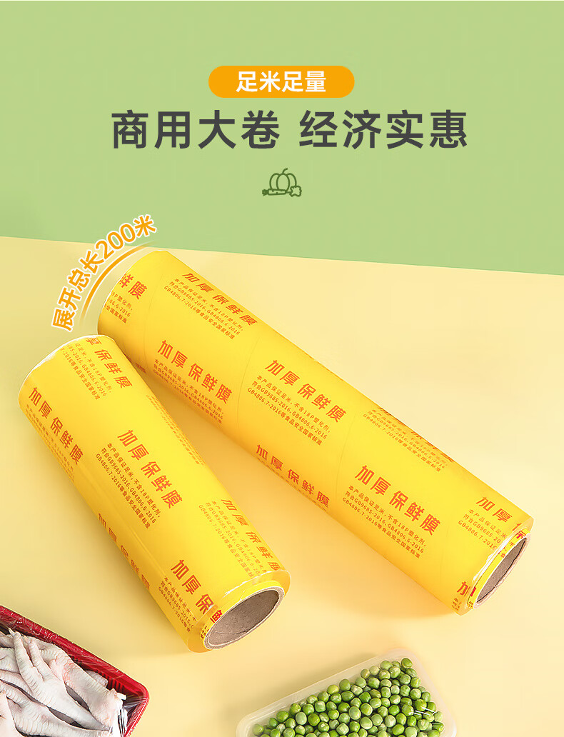 Temeiju cling film food grade household disposable wrapping film high temperature resistant large roll 200m*45cm