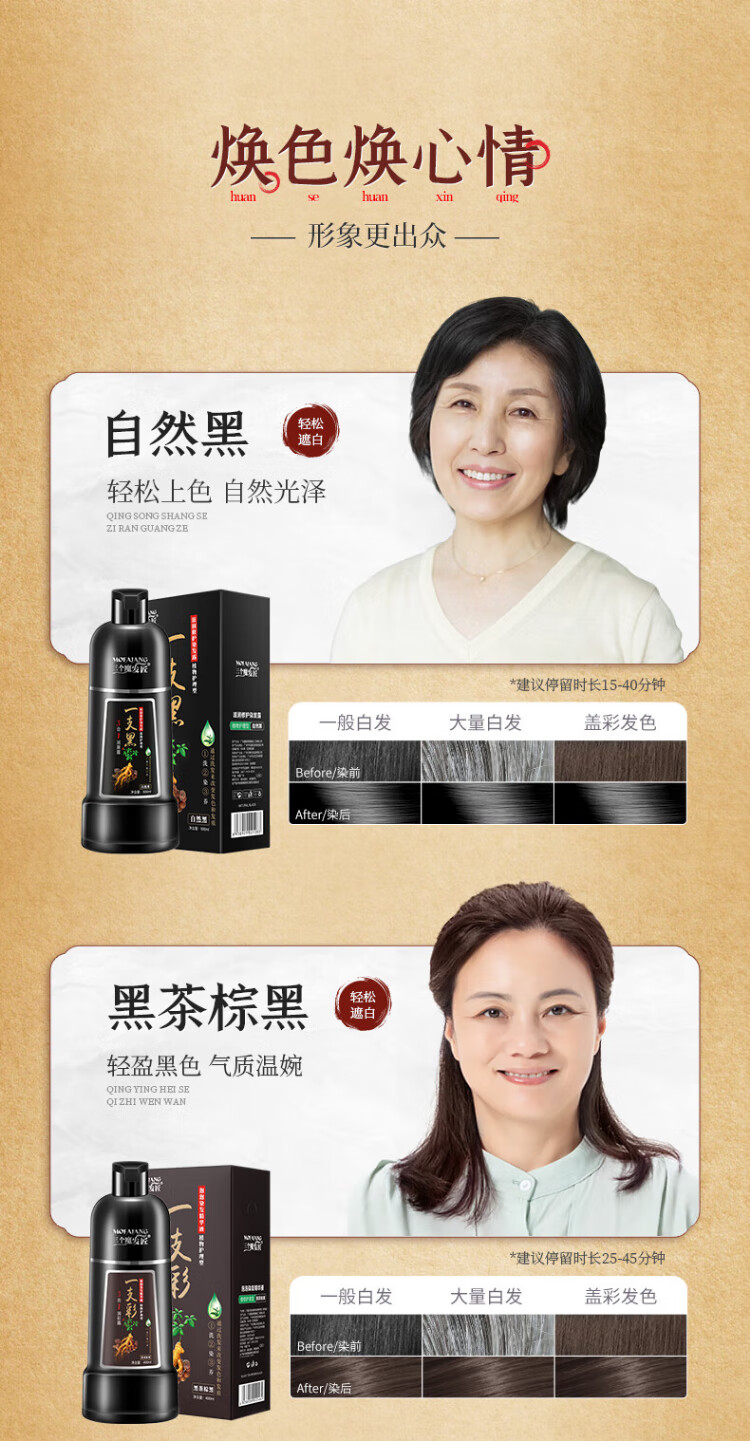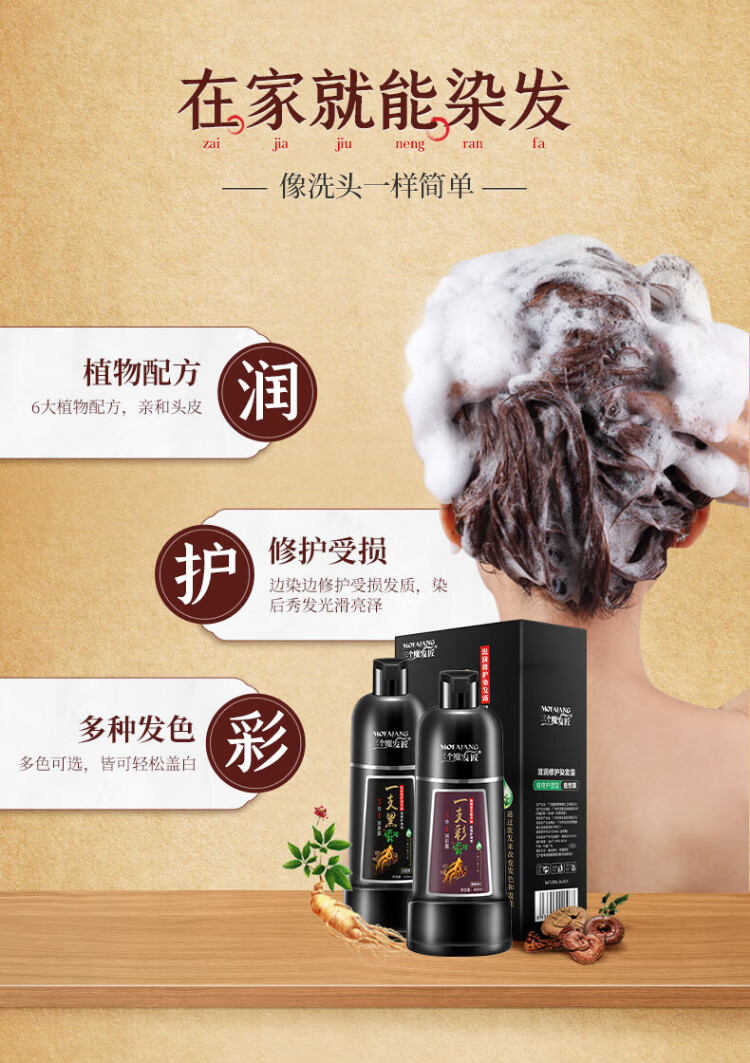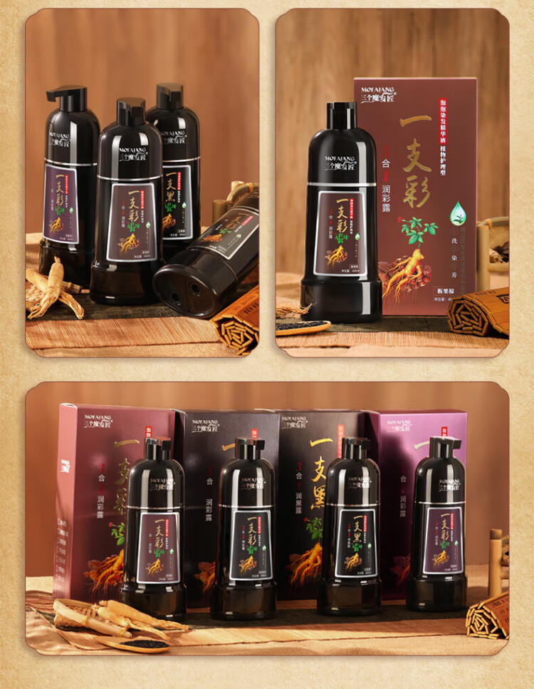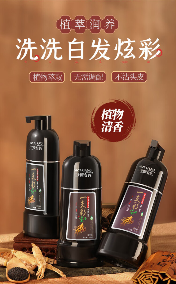 Three Magic Hairsmiths Black Plant Bubble Hair Dye Herbal Hair Dye Cream Covers Gray Hair Black Tea Brown Black 400ml
