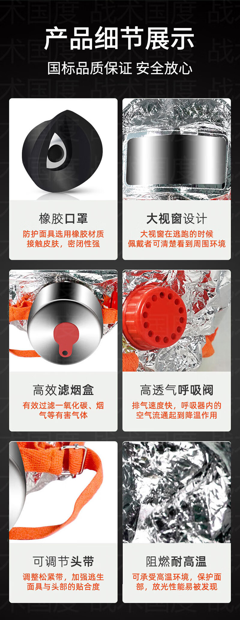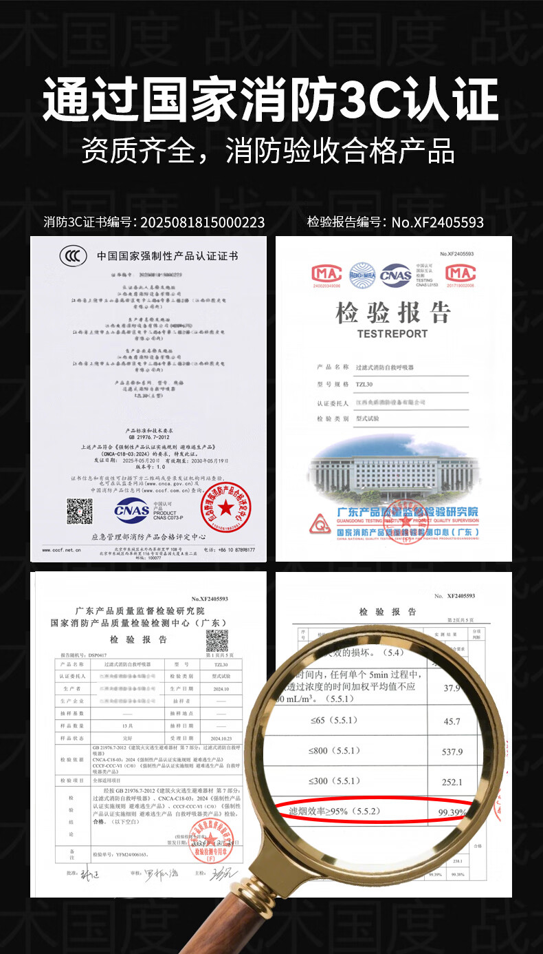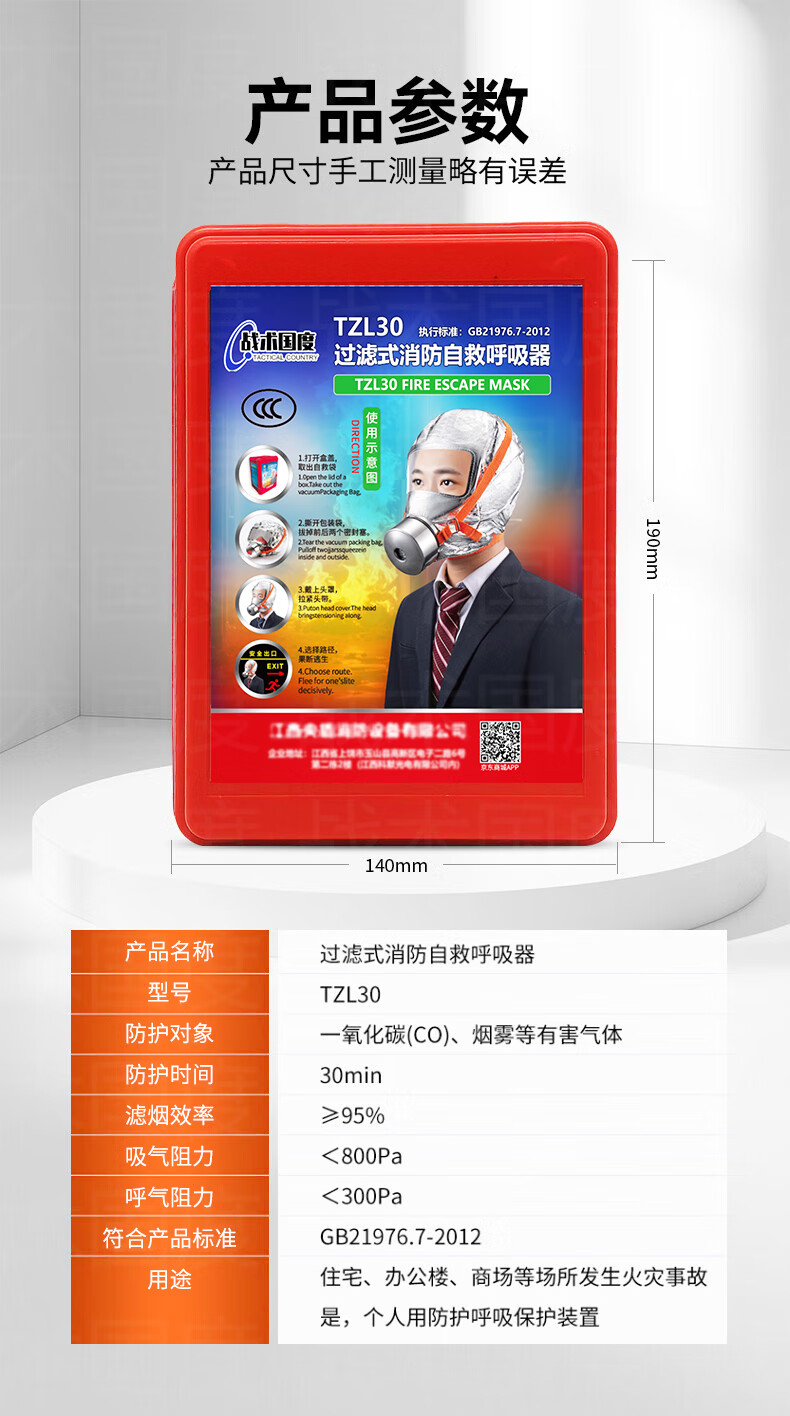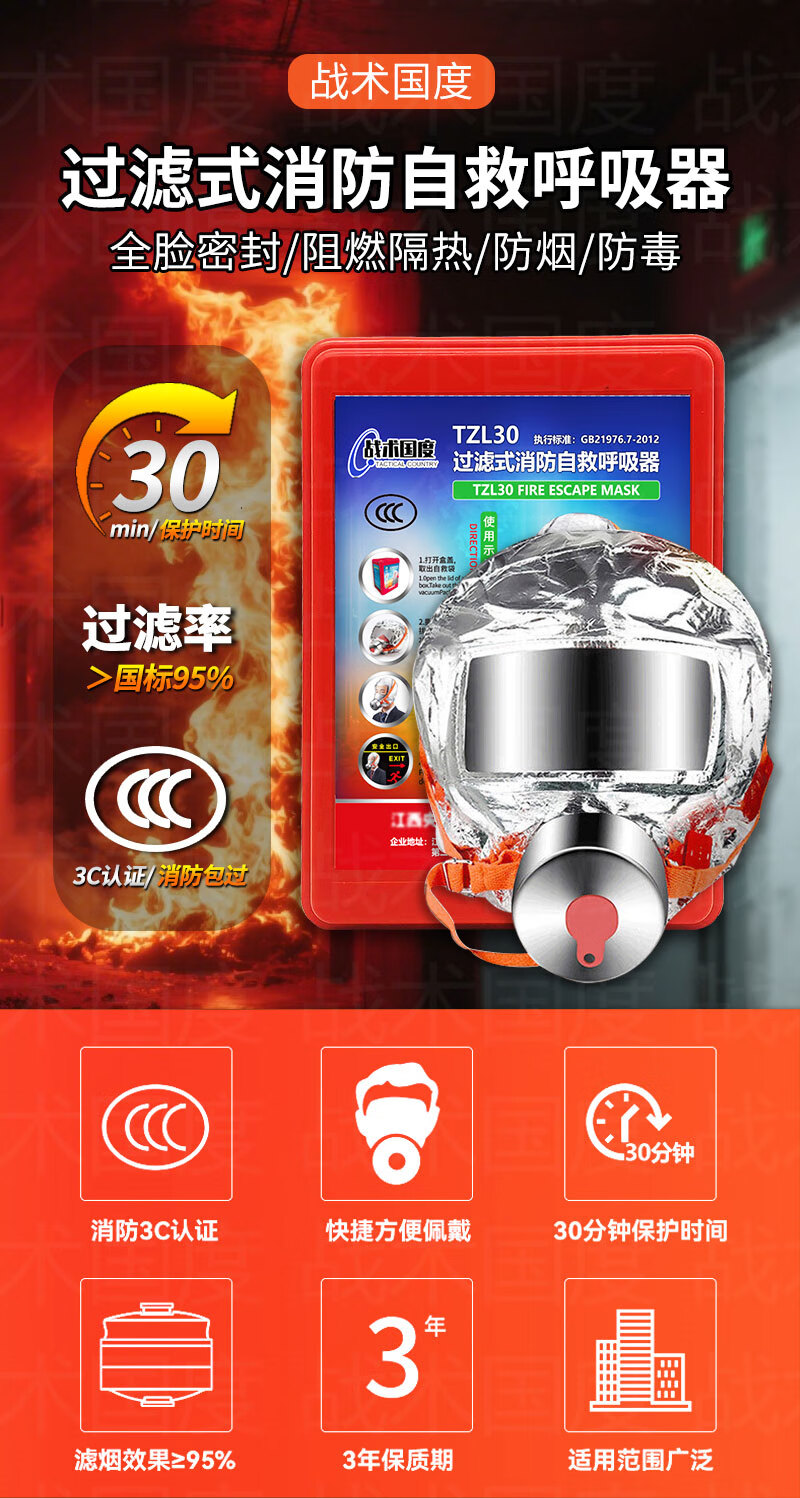Tactics Nation Jingcang Flash Delivery 99% Filtration Rate National Standard Smoke Mask 3C Certification Fire Escape Home Hotel Hotel Fire Protection Gas Mask Acceptance Filter Self-Rescue Respirator