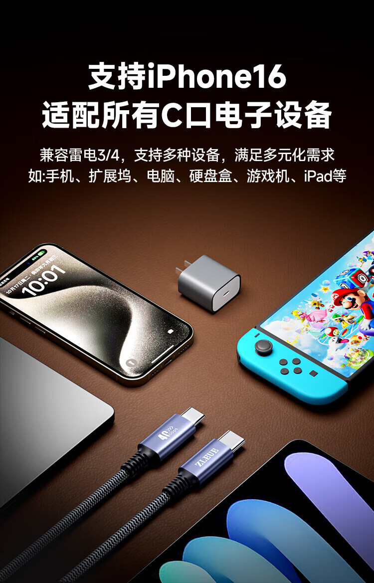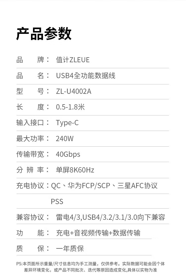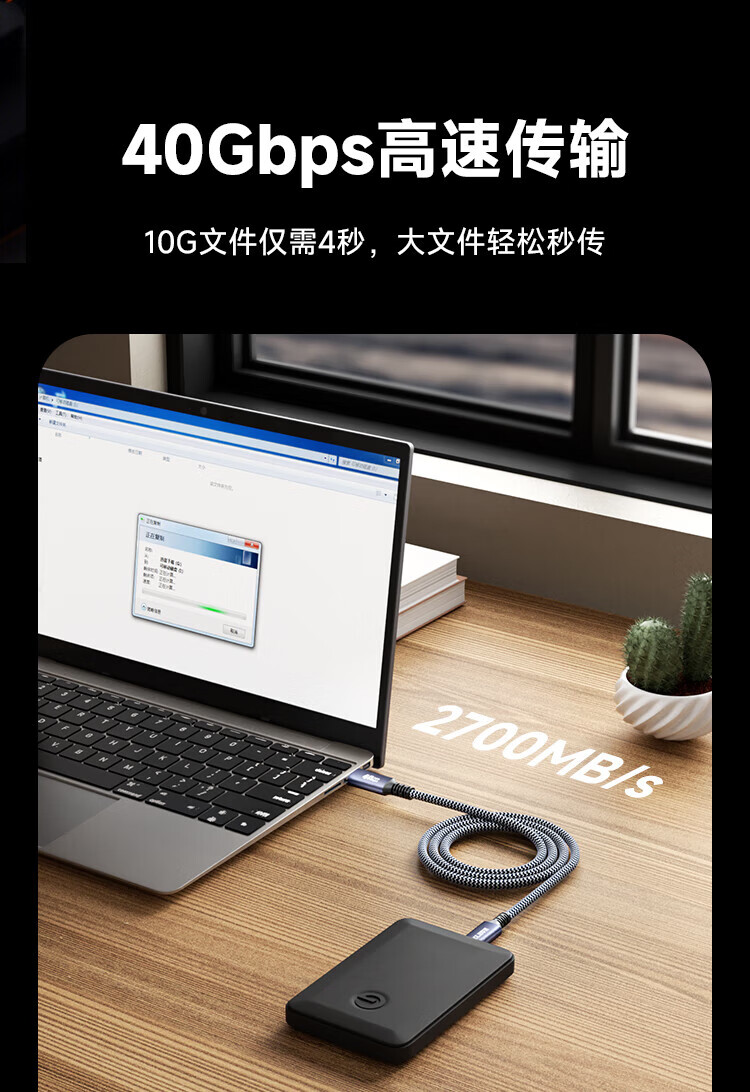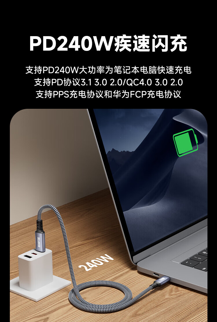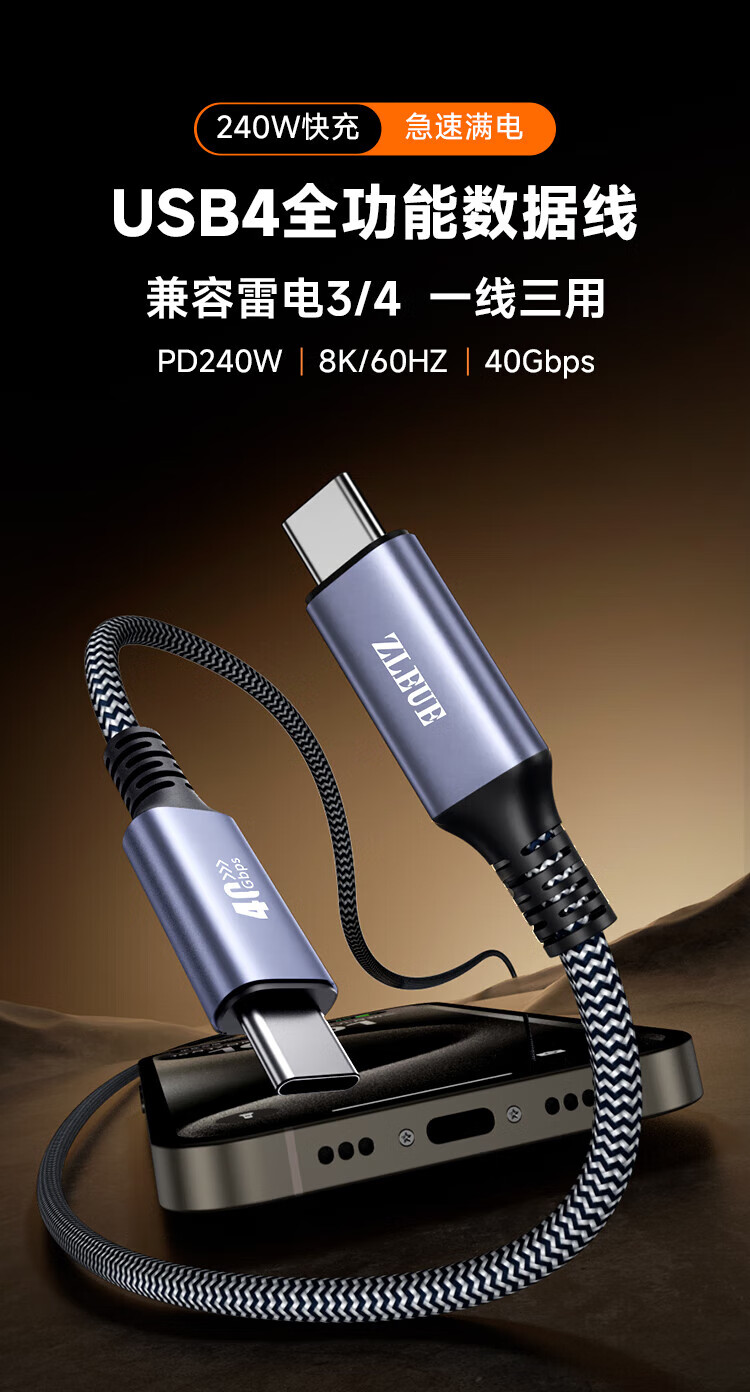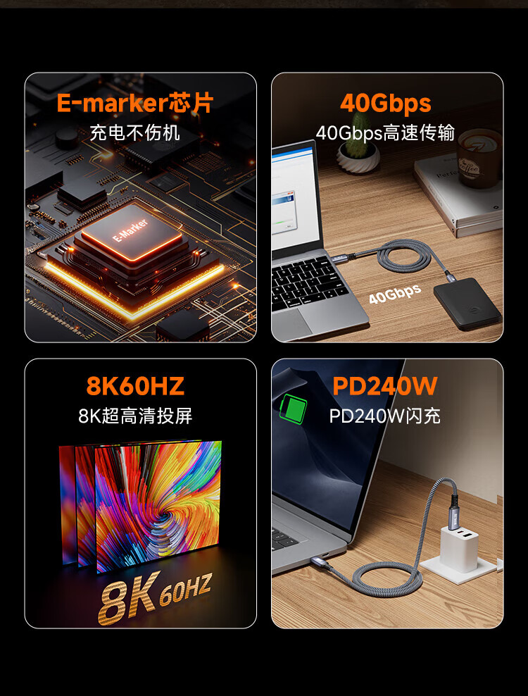 Value meter USB4 full-function type-c data cable 0.5 meters 8\4K high-definition video cable PD240W fast charging suitable for Apple Android Thunderbolt 4/3 mobile hard disk box one-line 40G
