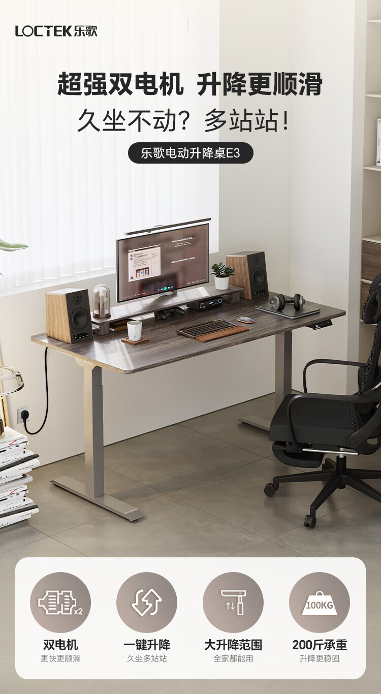 Lege Electric Lift Desk Computer Desk Dual Motor Standing Office Home Writing Desk E3/1.4m Elegant White Set