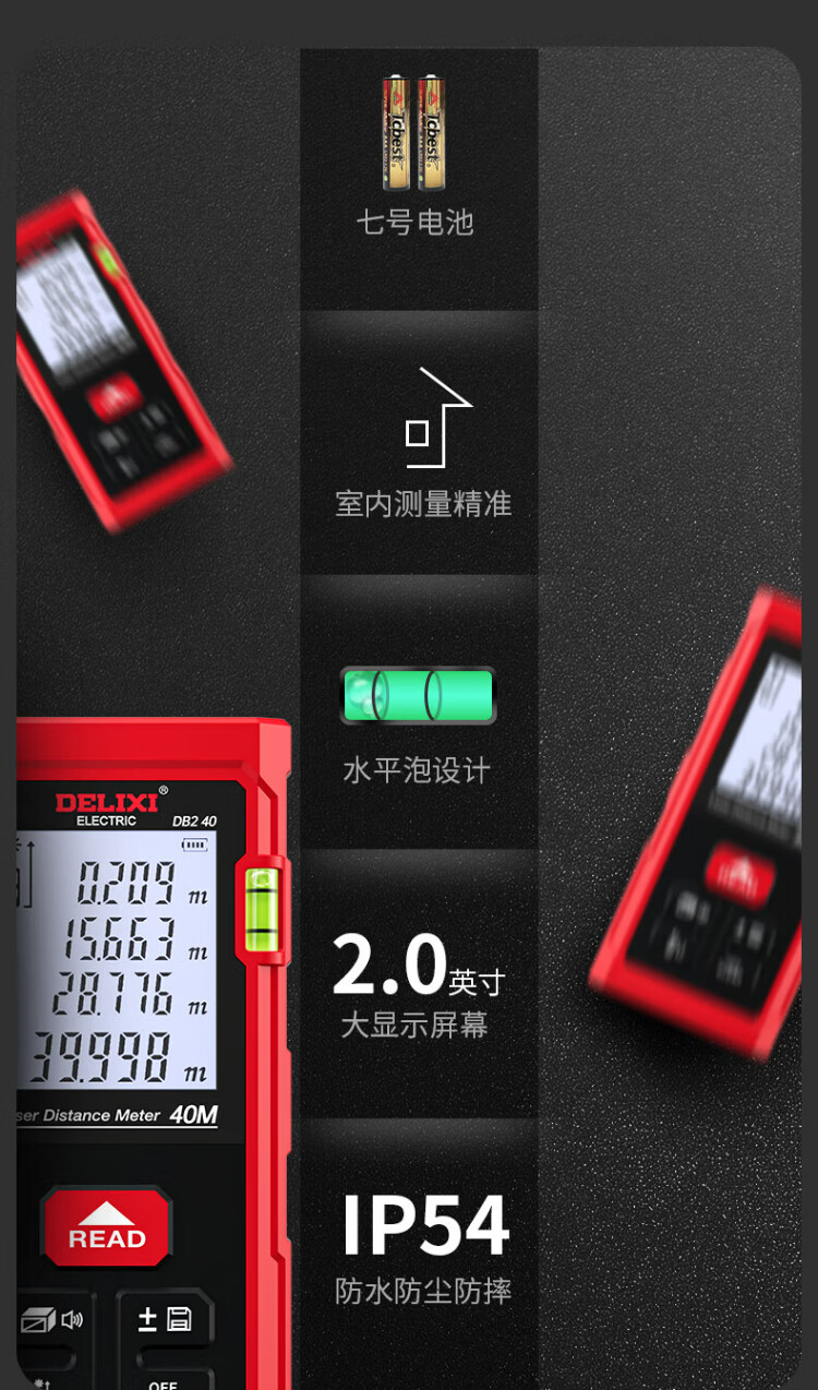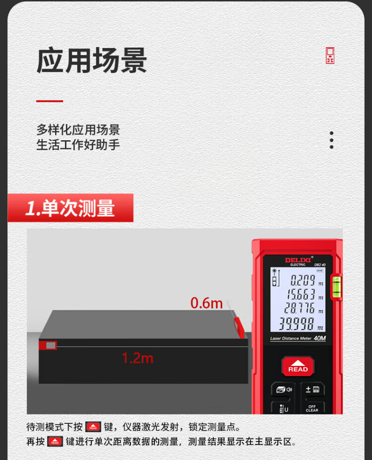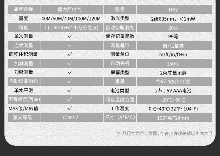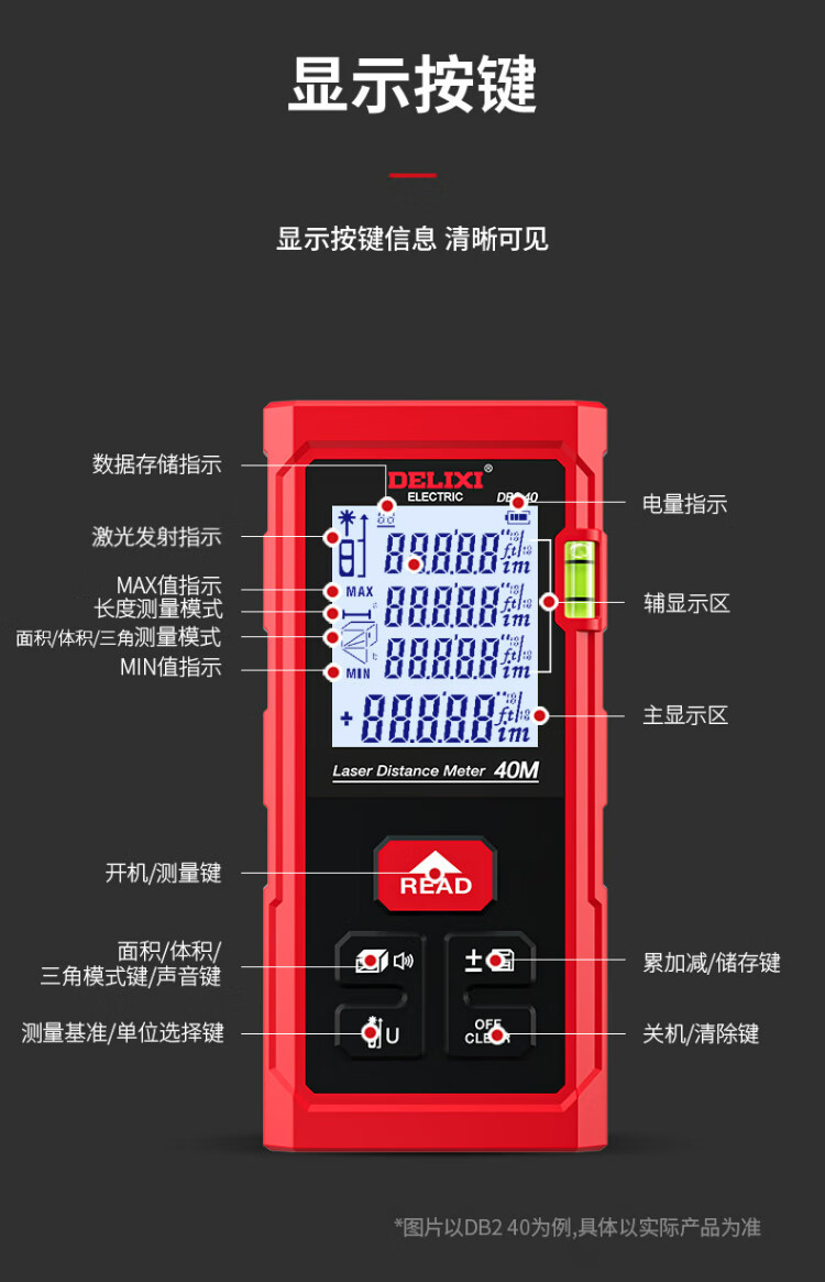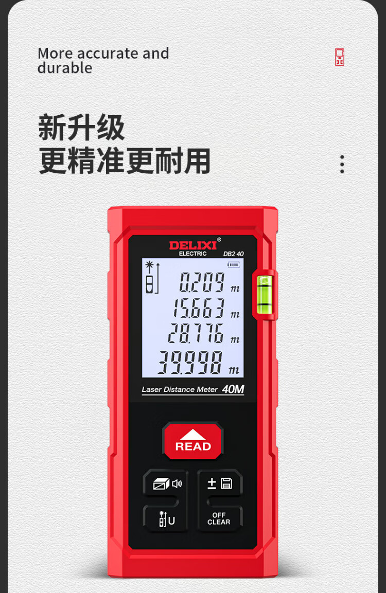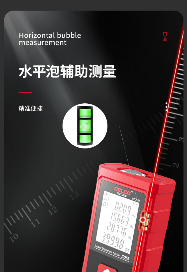 Delixi electrical distance meter high-precision handheld laser room measuring instrument household electronic ruler DB2 series single level bubble 40 meters