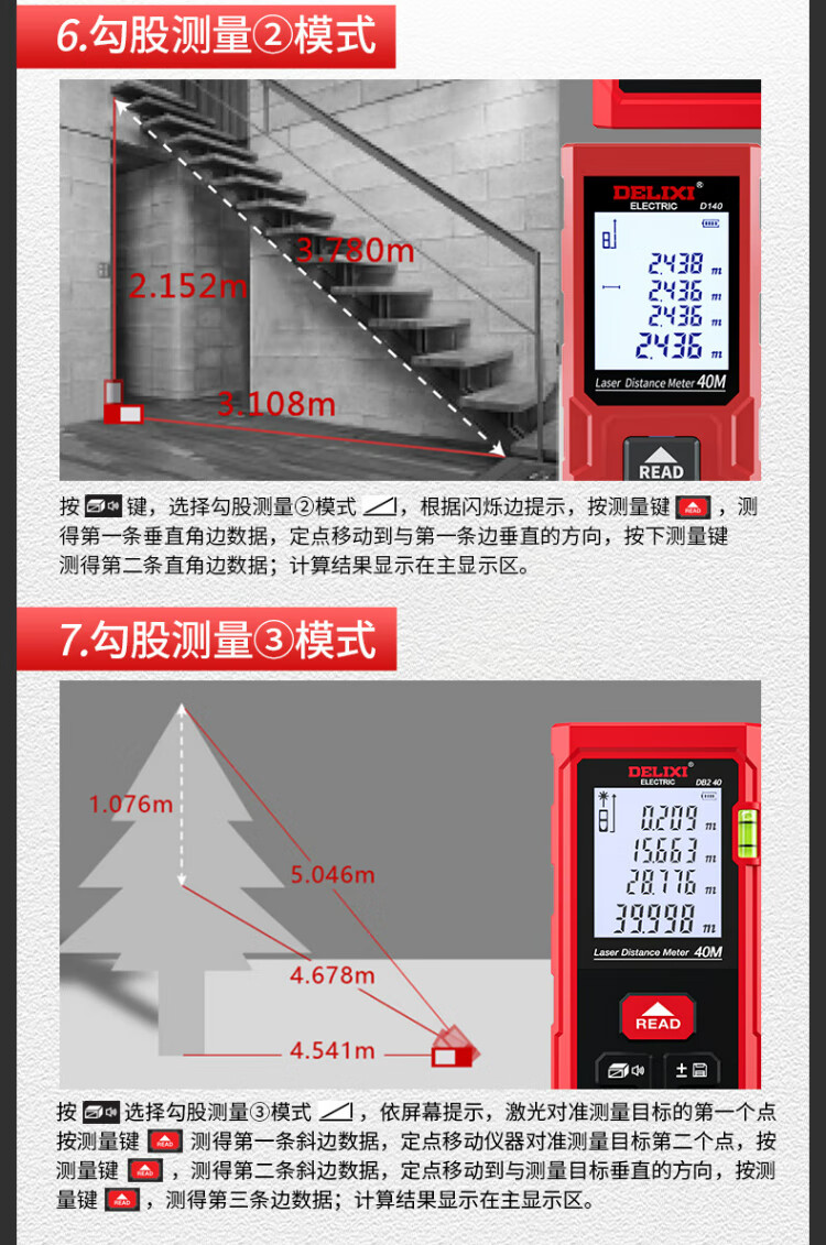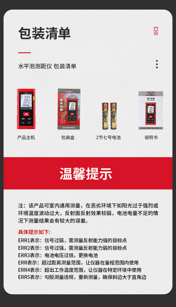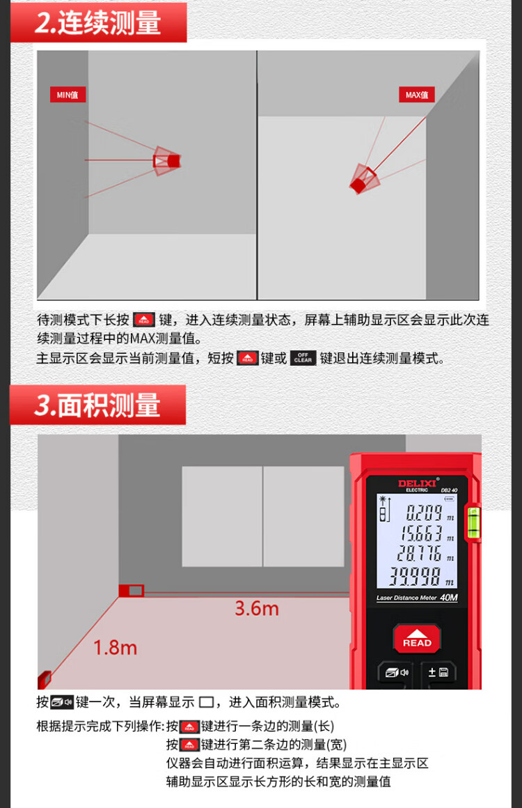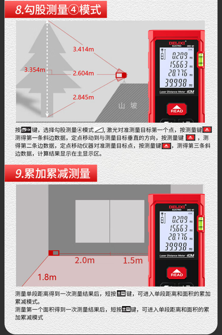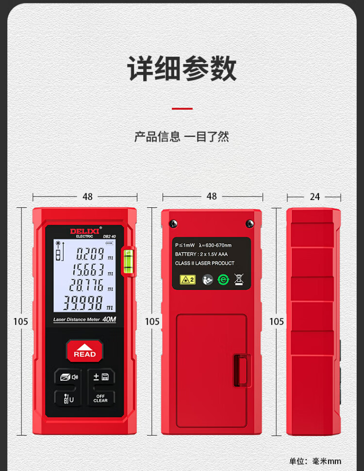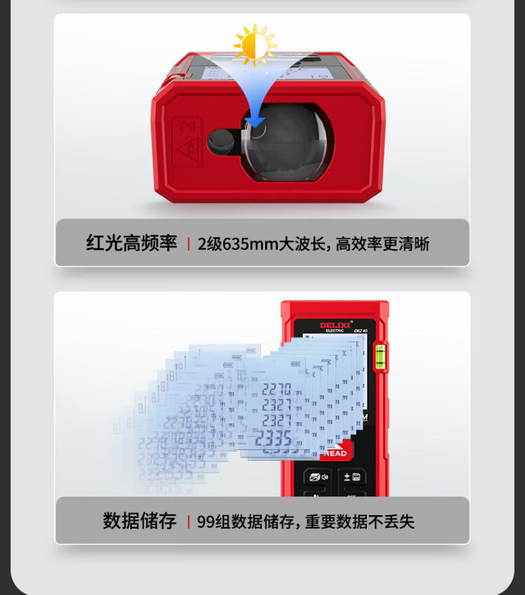Delixi electrical distance meter high-precision handheld laser room measuring instrument household electronic ruler DB2 series single level bubble 40 meters