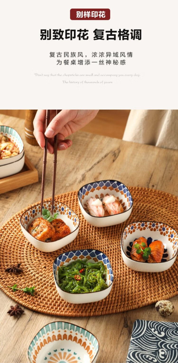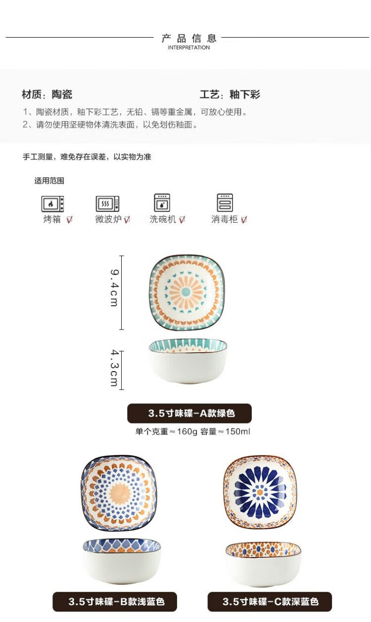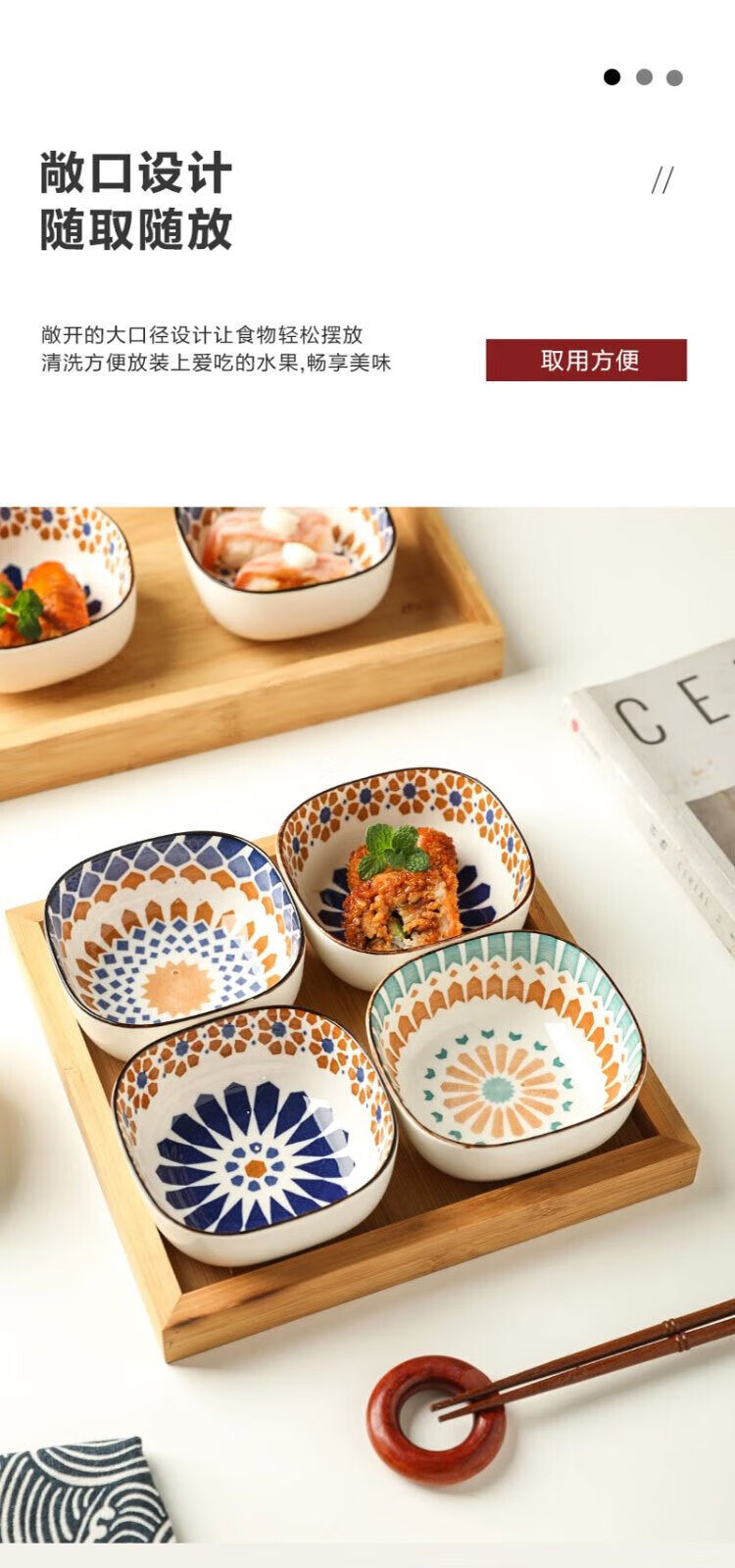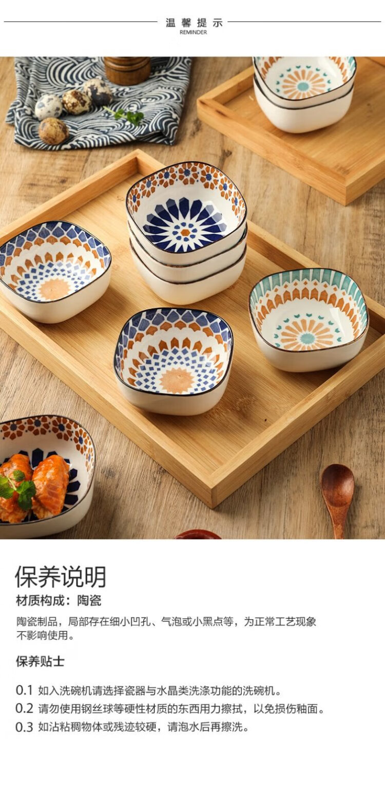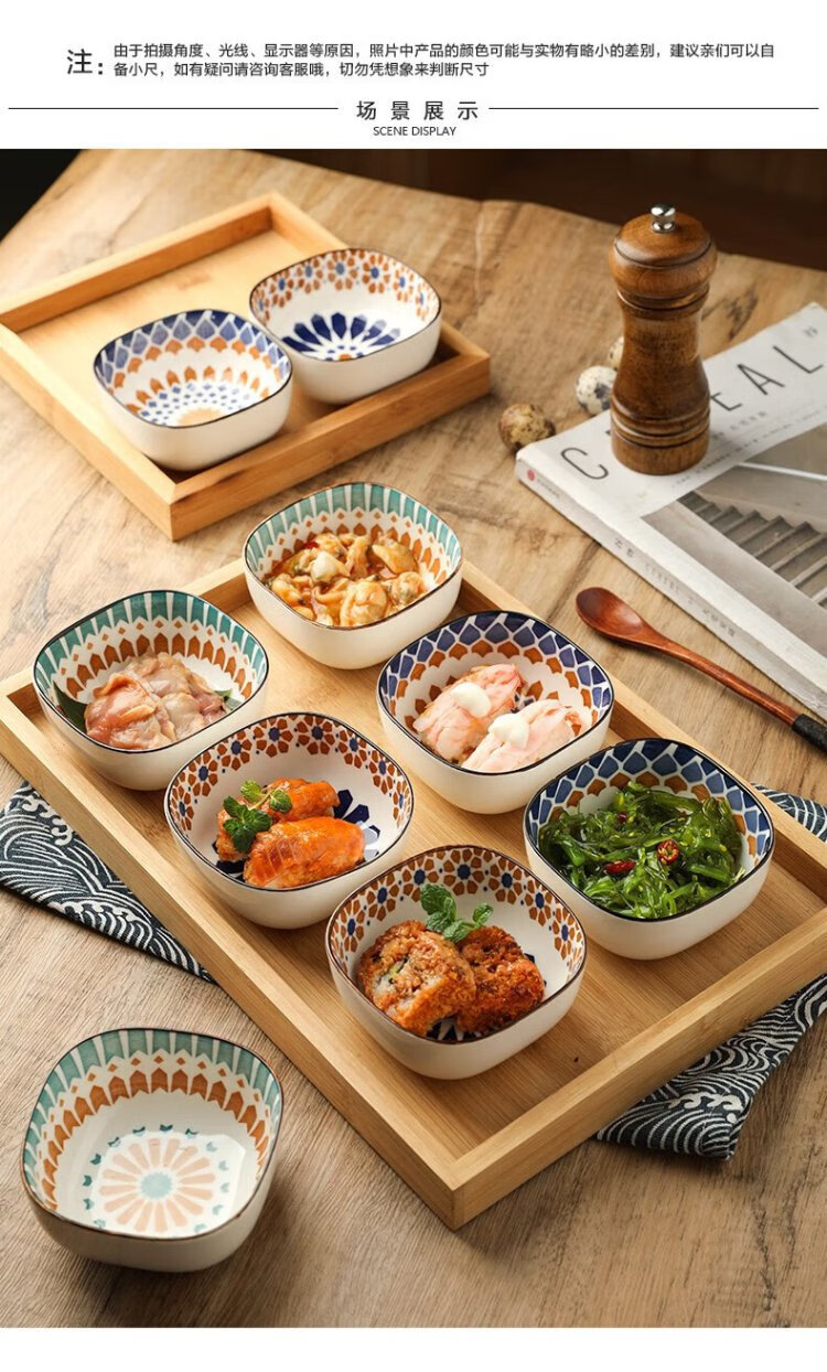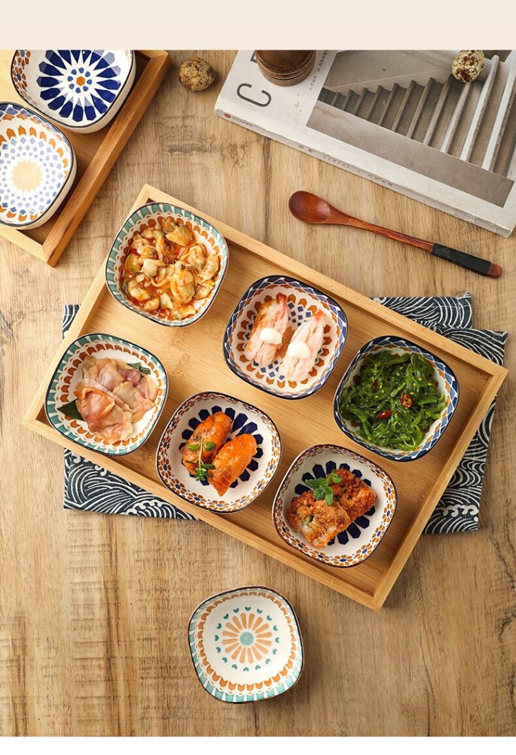 Dinner general dipping dish snack plate underglaze color ceramic Japanese-style household dipping dish condiment dish 6 bowl set without tray