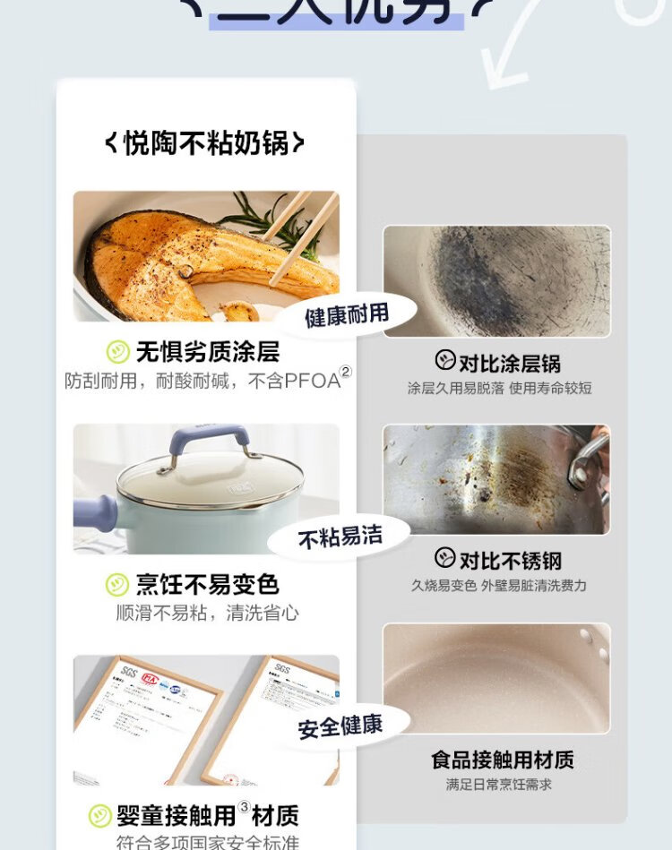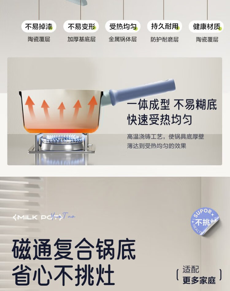 SUPOR non-stick milk pot 18cm small soup pot for cooking noodles hot milk baby food supplement induction cooker gas universal