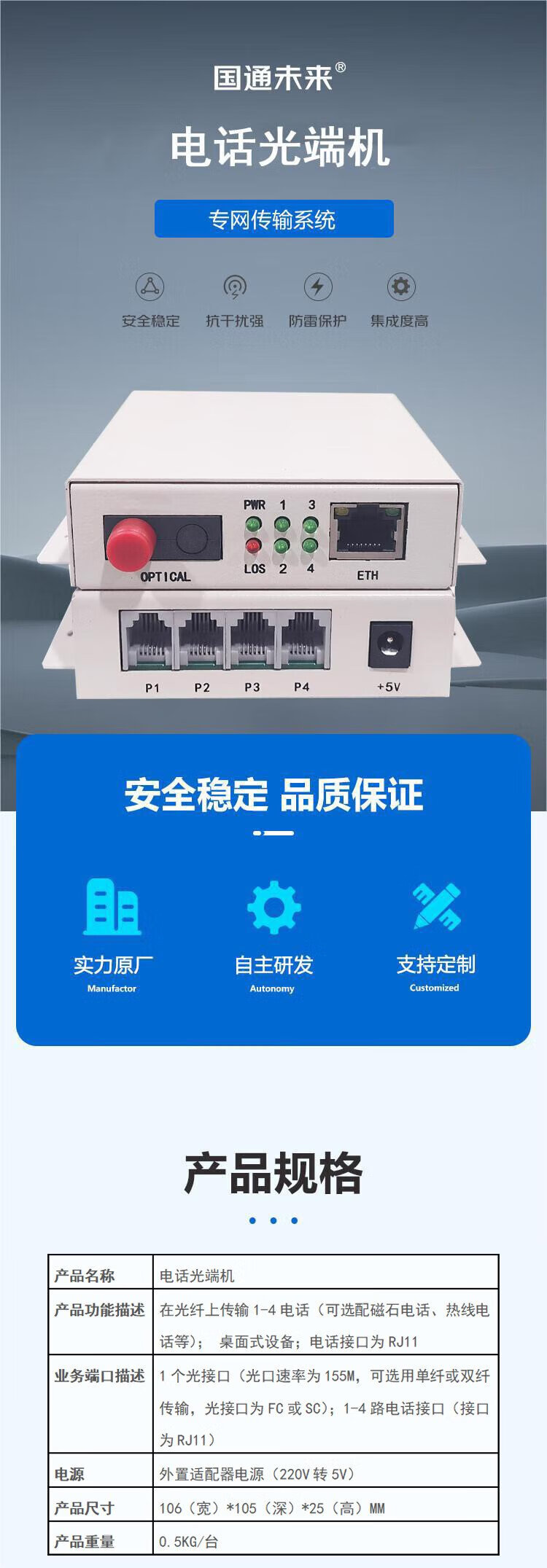 Guotong Future Telecom Grade 1-way Telephone Optical Terminal 1-way Voice to Optical Fiber GT PCM1A Pair Price