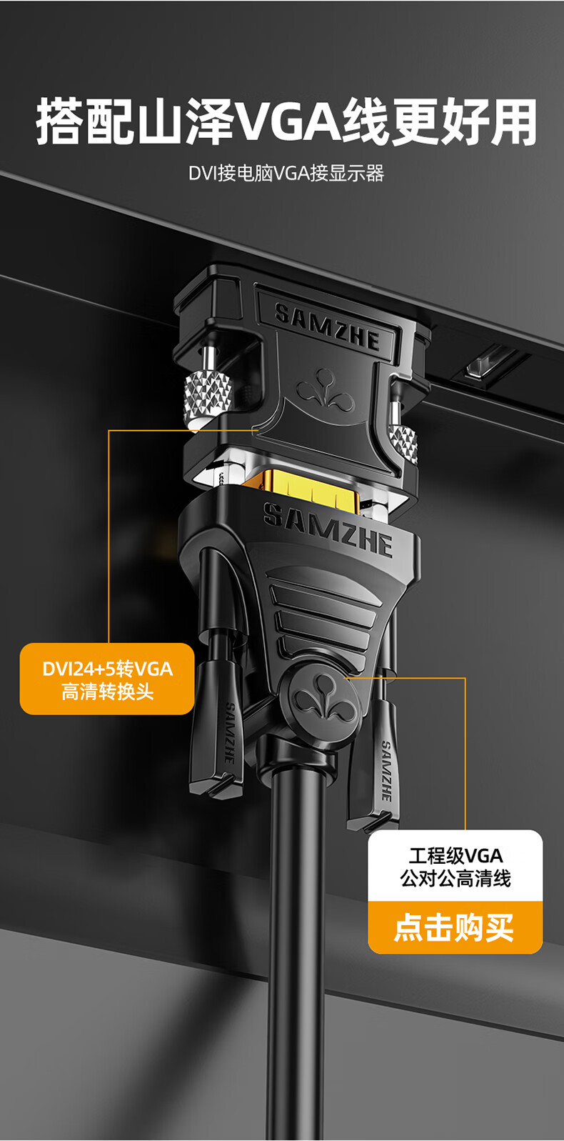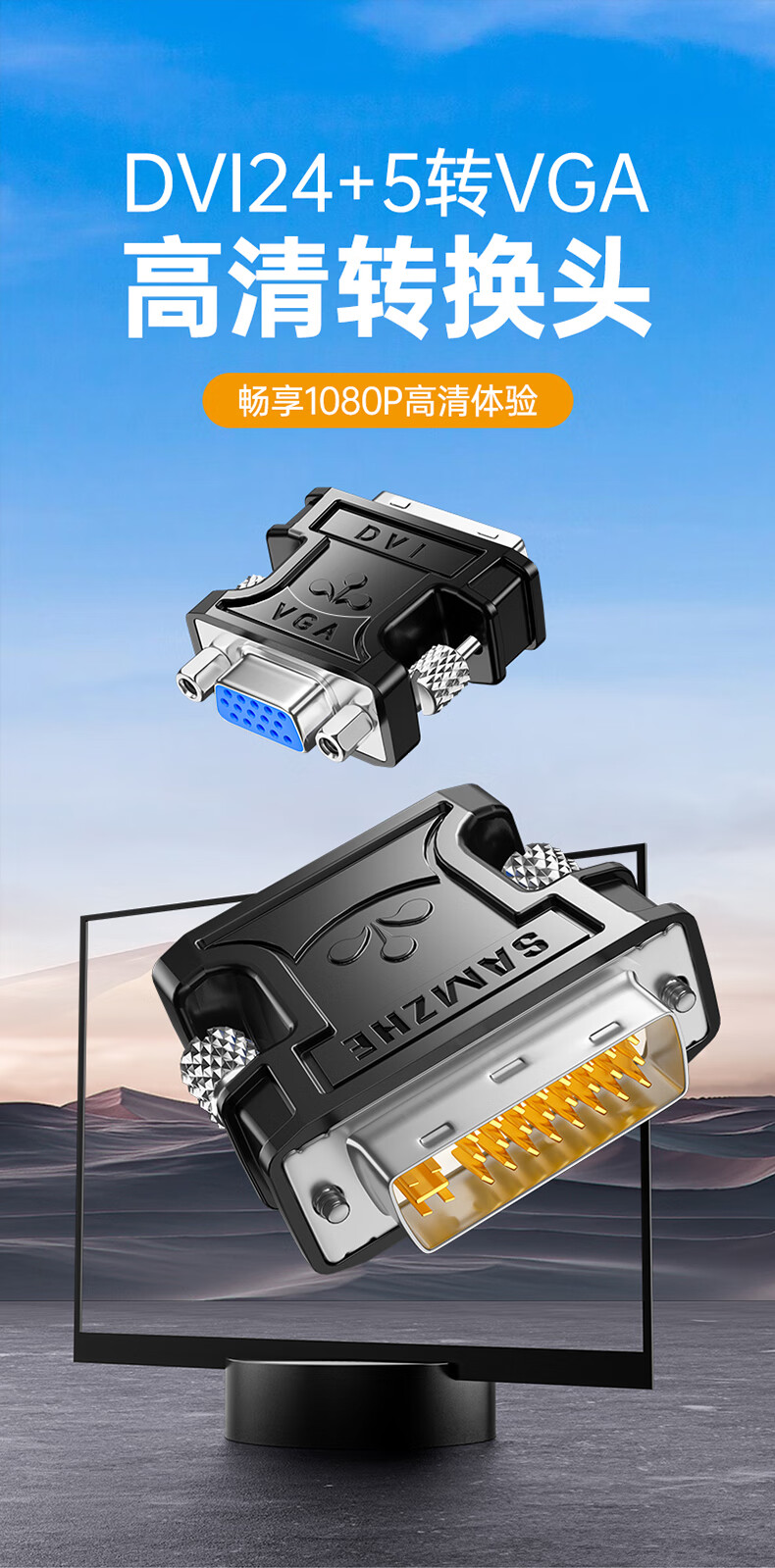Shanze DVI male to VGA female adapter DVI24+5/DVI-I to VGA HD adapter graphics card to monitor projector ZH-310B