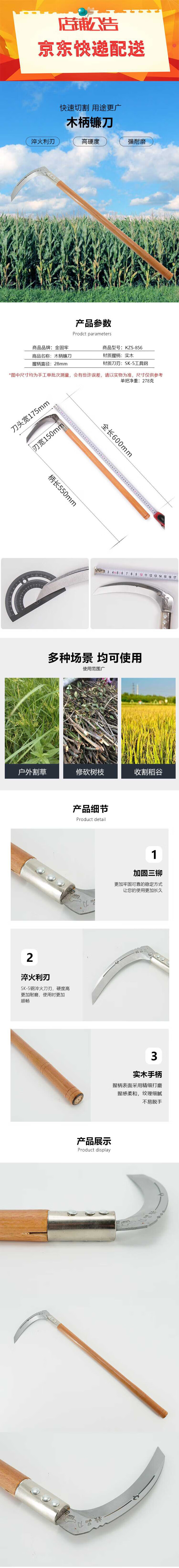 Jinguluo lawn mower, weeding harvester knife, SK-5 steel grinding-free agricultural wooden handle sickle, 5 pieces KZS-856