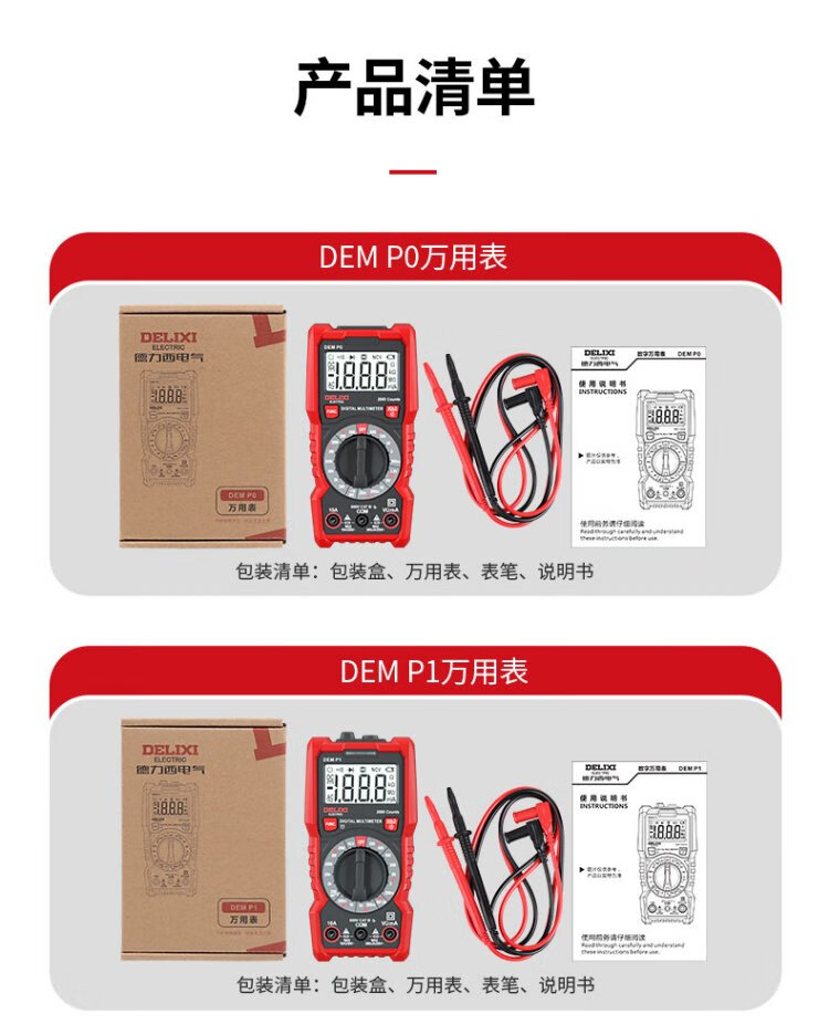 Delixi electrical multimeter 890C high-precision household anti-burn electrician meter NCV voltage detection P3 smart multimeter P3