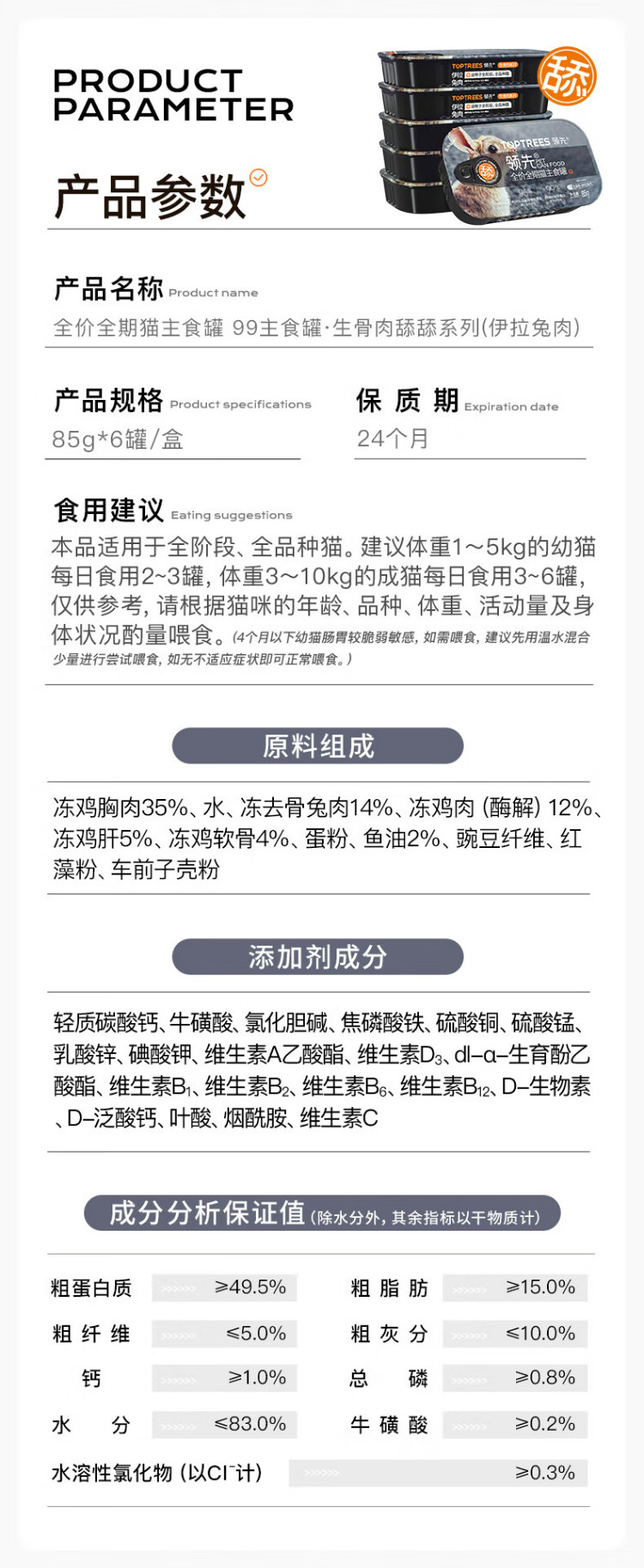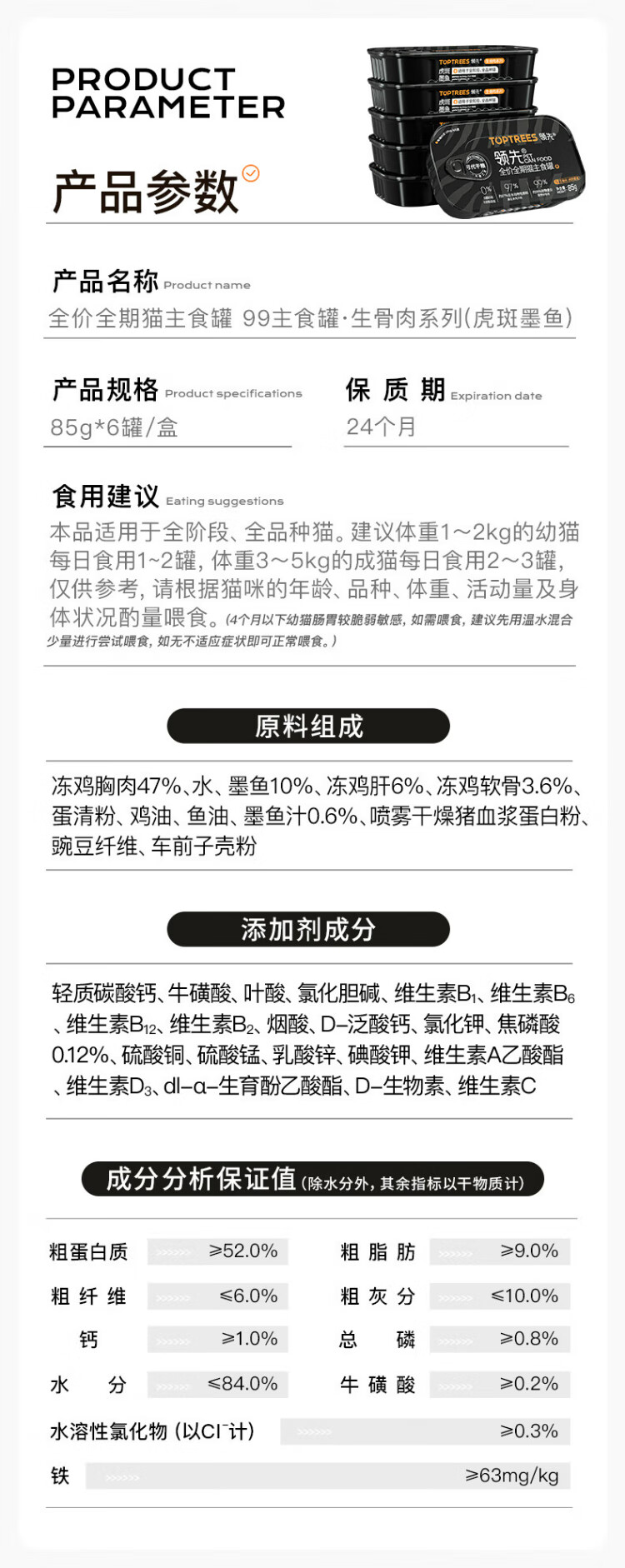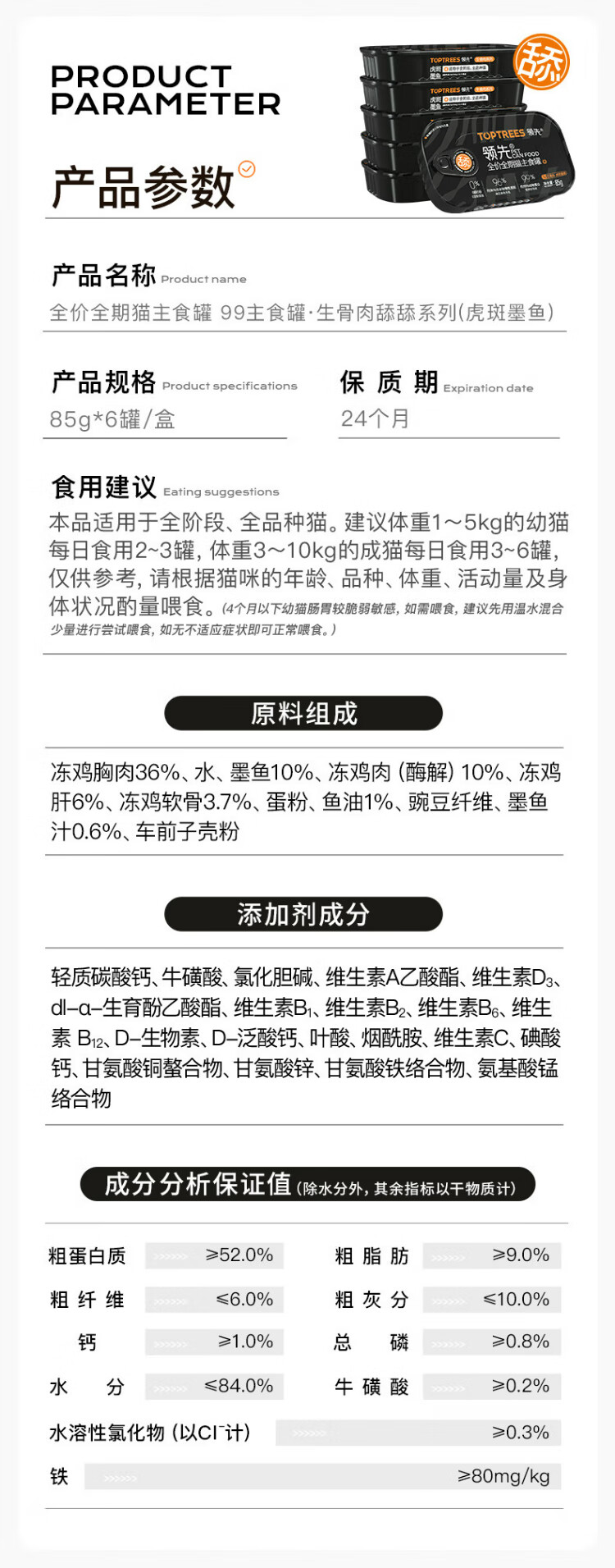 Leading licking tabby cuttlefish raw bone and meat staple cat canned cat snacks wet food ice cream texture 85g*6 cans