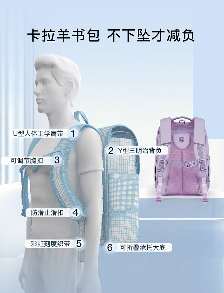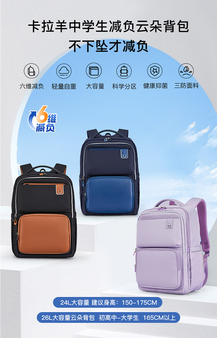 Kara Sheep schoolbag junior high school students 5-9th grade elementary school students ultra-light cloud backpack middle school students decompression spine protection backpack for men and women