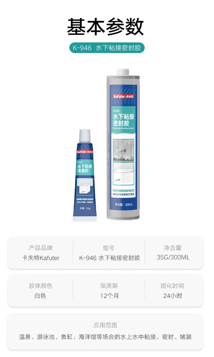 Kafter fish tank glass glue K-946 underwater sealing tape water leakage bonding PVC water pipe repair fish tank water tank cracks swimming pool bathroom white 35g