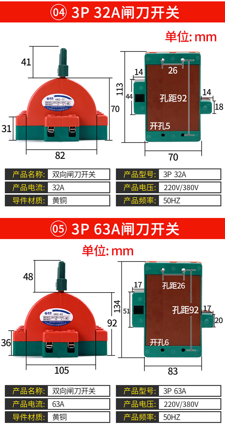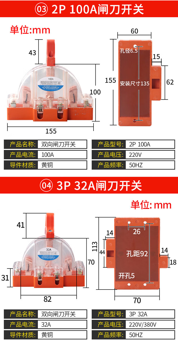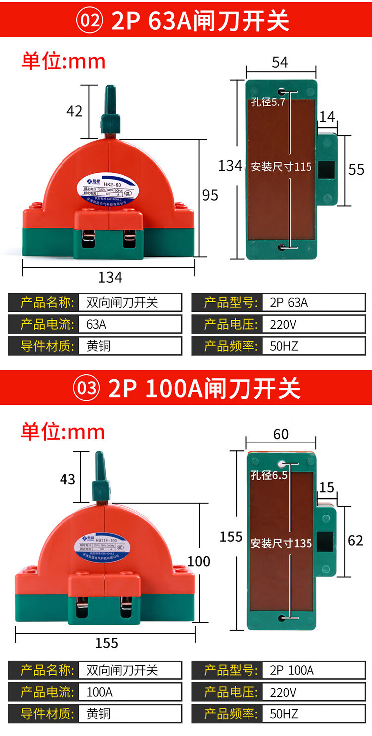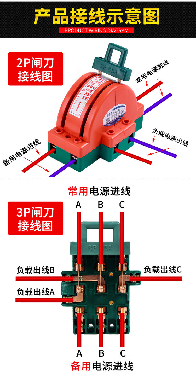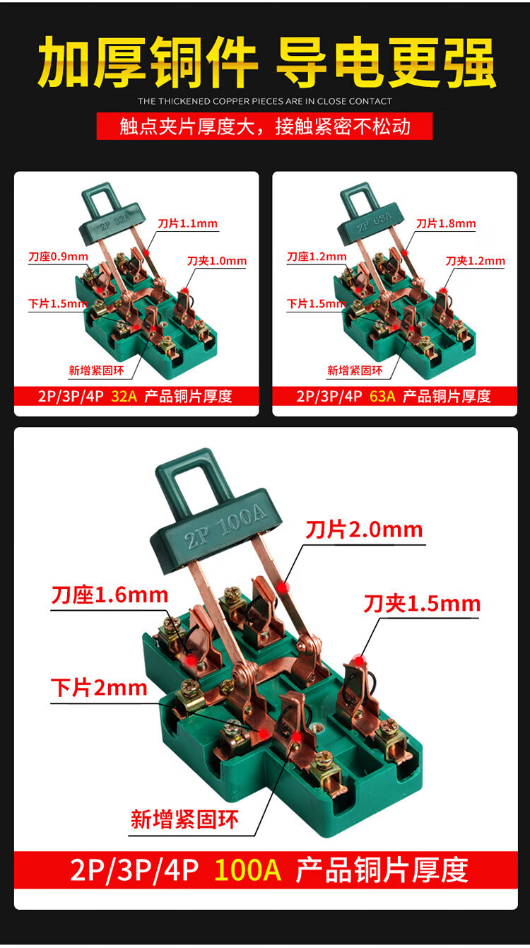 Kailan Intelligent Manufacturing Copper 2P32A100A double-throw knife reverse switch knife switch two-way knife load switch