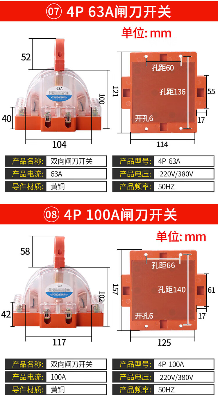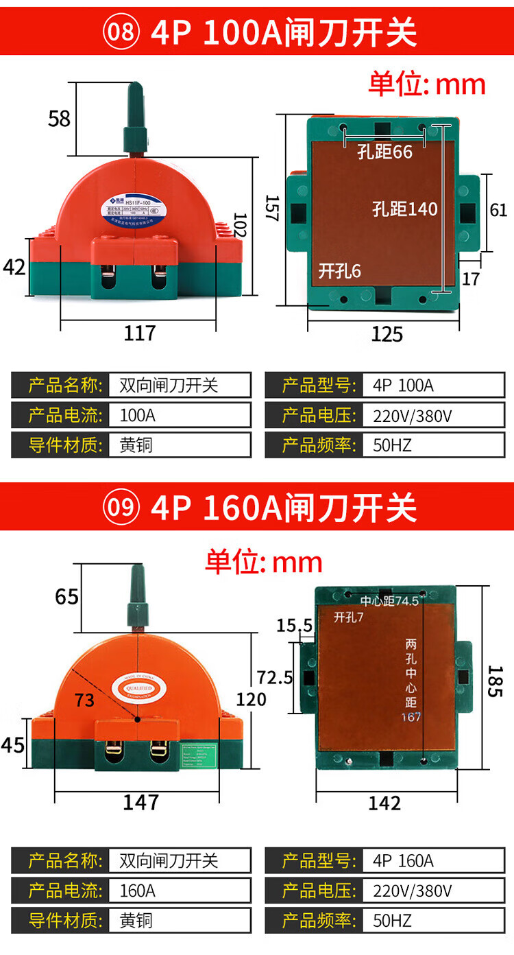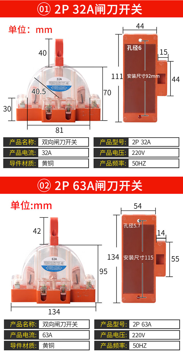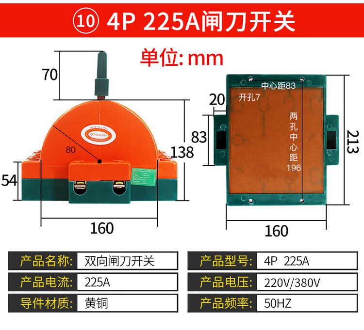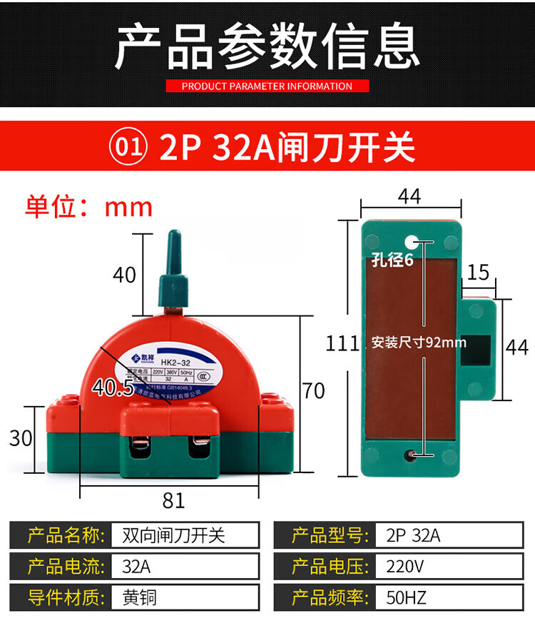 Kailan Intelligent Manufacturing Copper 2P32A100A double-throw knife reverse switch knife switch two-way knife load switch