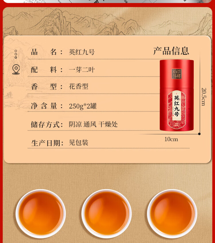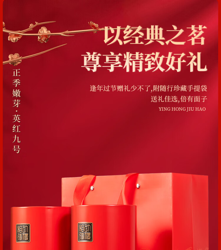 Sanyin Tea Premium Yinghong No. 9 Guangdong Yingde Black Tea Kungfu Black Tea Gift Box 500g Tea Gift Box for My Father-in-law